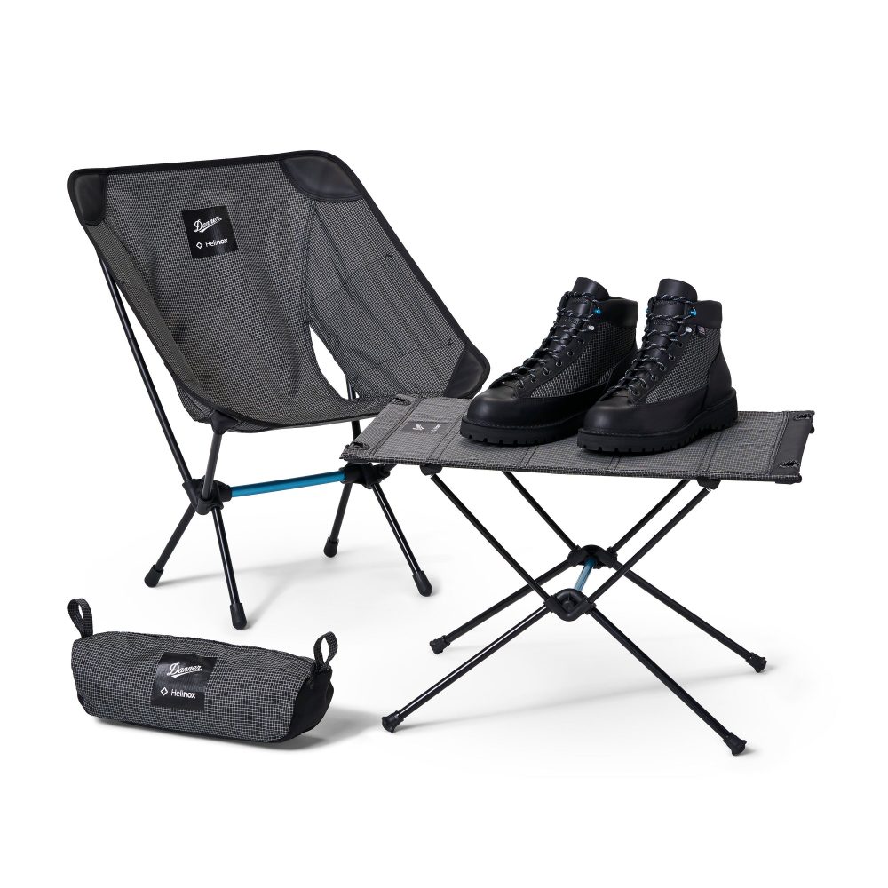 Camp Collection 包括三款单品:特别版Danner Light boot 、Helinox Chair One 以及Table One Hardtop 。作为实用的的营地系列装备,此次的三款作品融合创新设计和卓越工艺,以确保极致舒适的使用感与长久的使用寿命。每款单品都使用了最好材料打造,其中搭载经典鞋型的Danner Light boot 是纯正波特兰制,采用高级皮革、GORE-TEX 衬里和Vibram® Kletterlift 外底的组合,为呼应合作主题,Danner 又借用Helinox 标志性防撕裂尼龙材质制作Dyneema® 鞋带(世界上最强纤维)以提高强度标准。The Helinox Chair One 与Table One Hard Top 两款营地专用装备则使用超耐用Helinox 独家纺织材料打造,并使用DAC 铝合金,以最小的自身重量去提供最大承载强度。