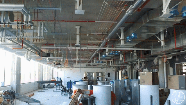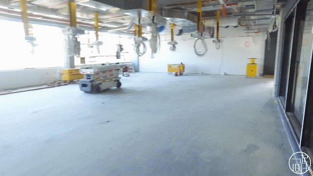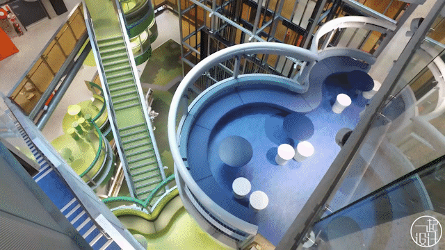 实验室内暴露顶对应彩色地板,带来极强的视觉冲击感▽