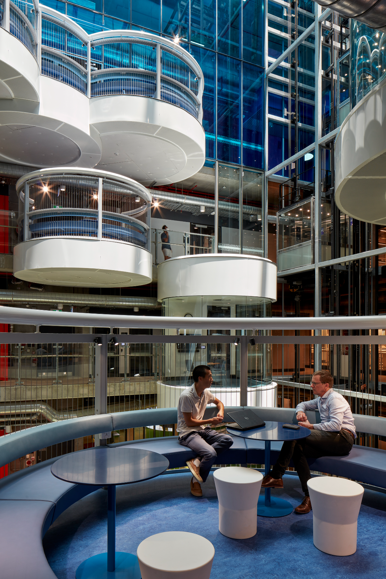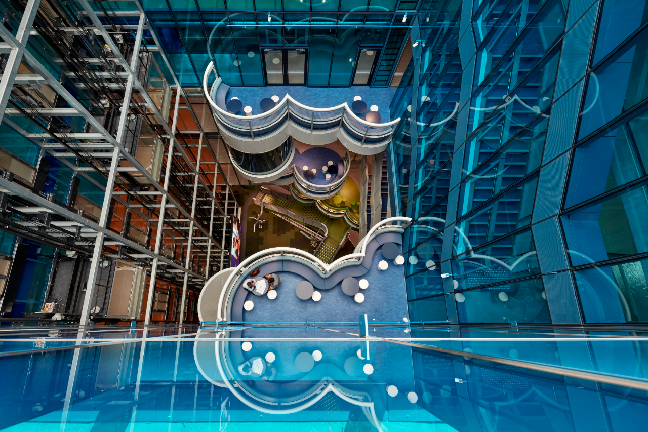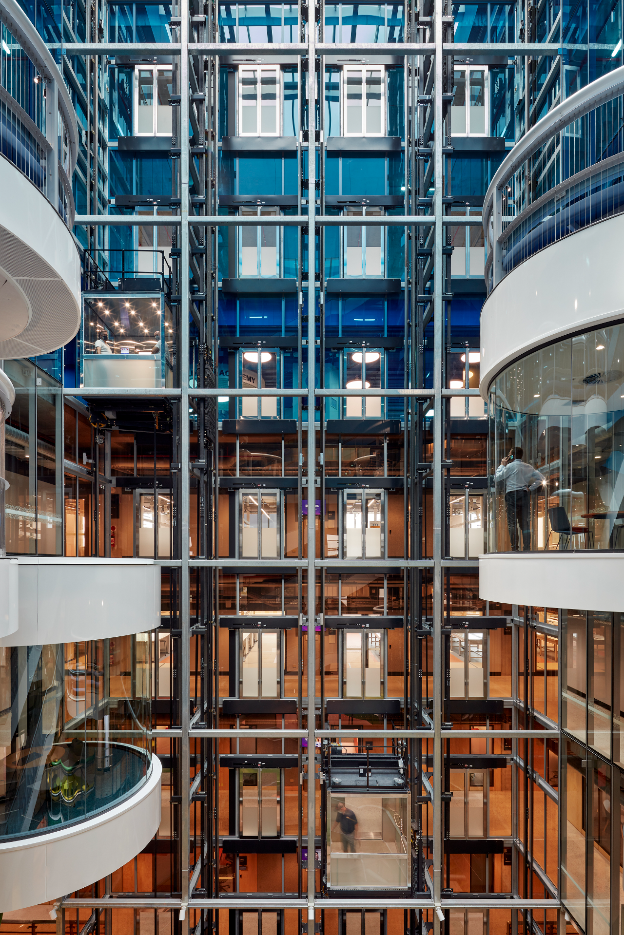 楼内中庭的设计传达出了有力的气场,从中庭往下看整个空间极具梦幻,从下往上看则能感受到浓厚的工业气息。