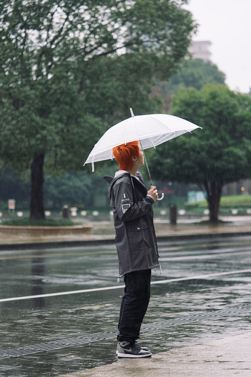 休闲风衣款式的防水外套是连绵雨季的必备单品,内搭基本款T恤或简洁卫衣便可创造出干净利落的明朗风格。为雨季配搭烦心时,尝试做减法往往更能事半功倍。