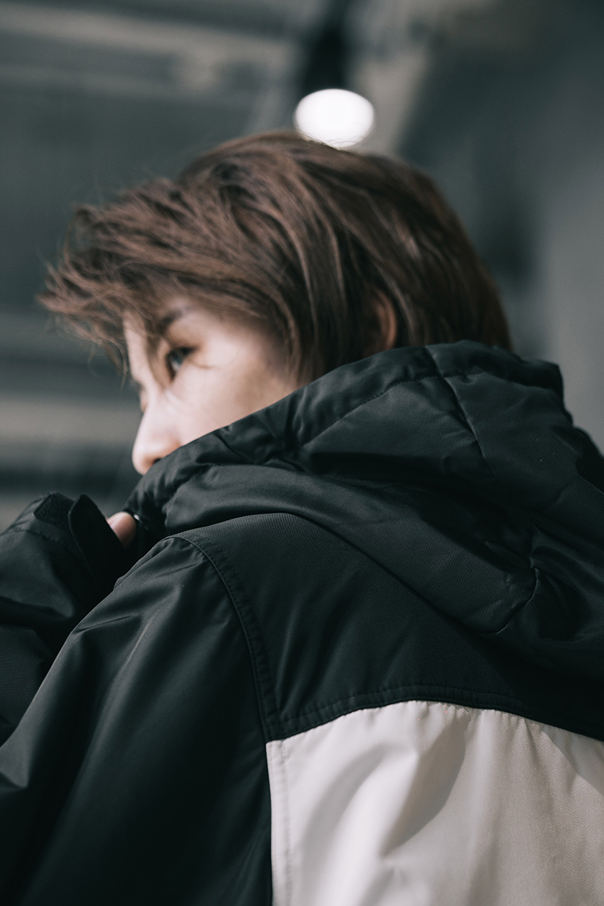 黑白拼色百搭指数报表的防水连帽外套,即使内搭粗线条温暖牌毛衣也丝毫不违和。出门前潇洒一套,应季应景的厚度可一路穿至樱花盛开的季节。