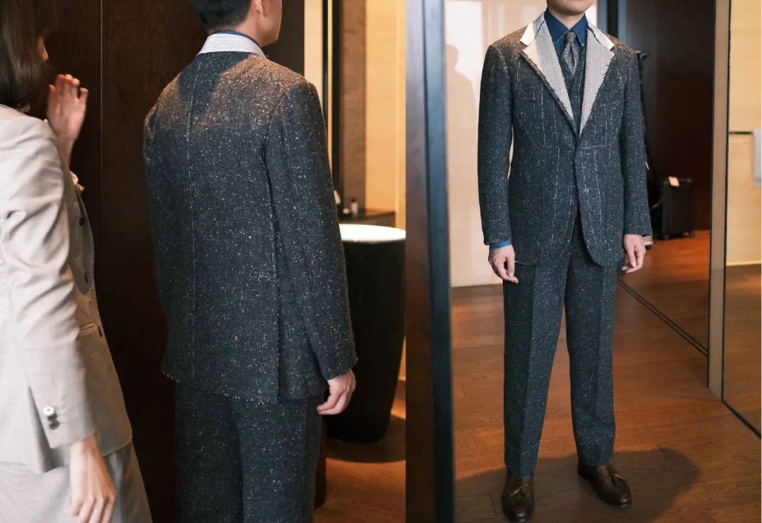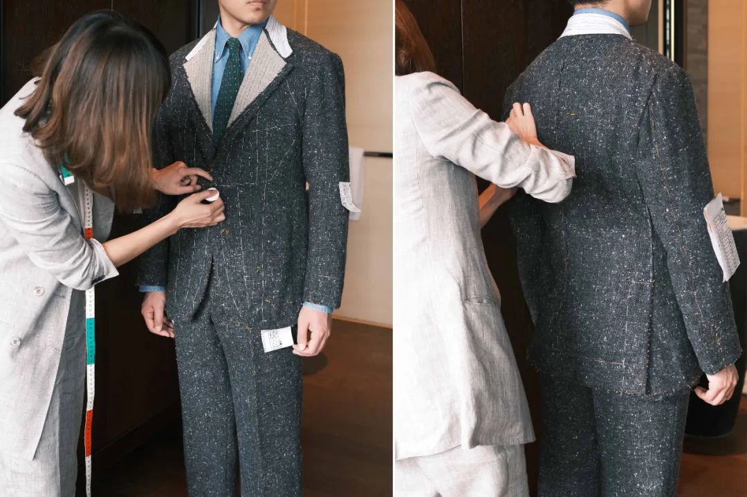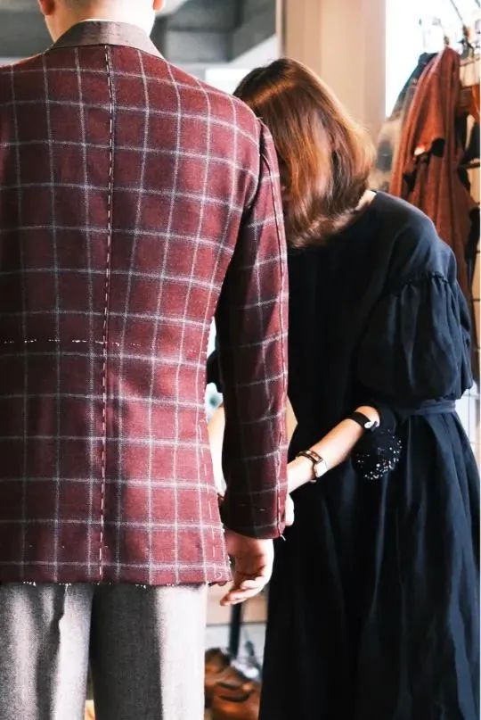 木蘭特长偏向意大利的感觉,之前我英式衣服较多,很想尝试不同感觉;木蘭各种细节的自由度很高,大海作为主理人,也是定制的爱好者,所以对整体既有规则也有自己的想法,对身材的修饰也让人满意;