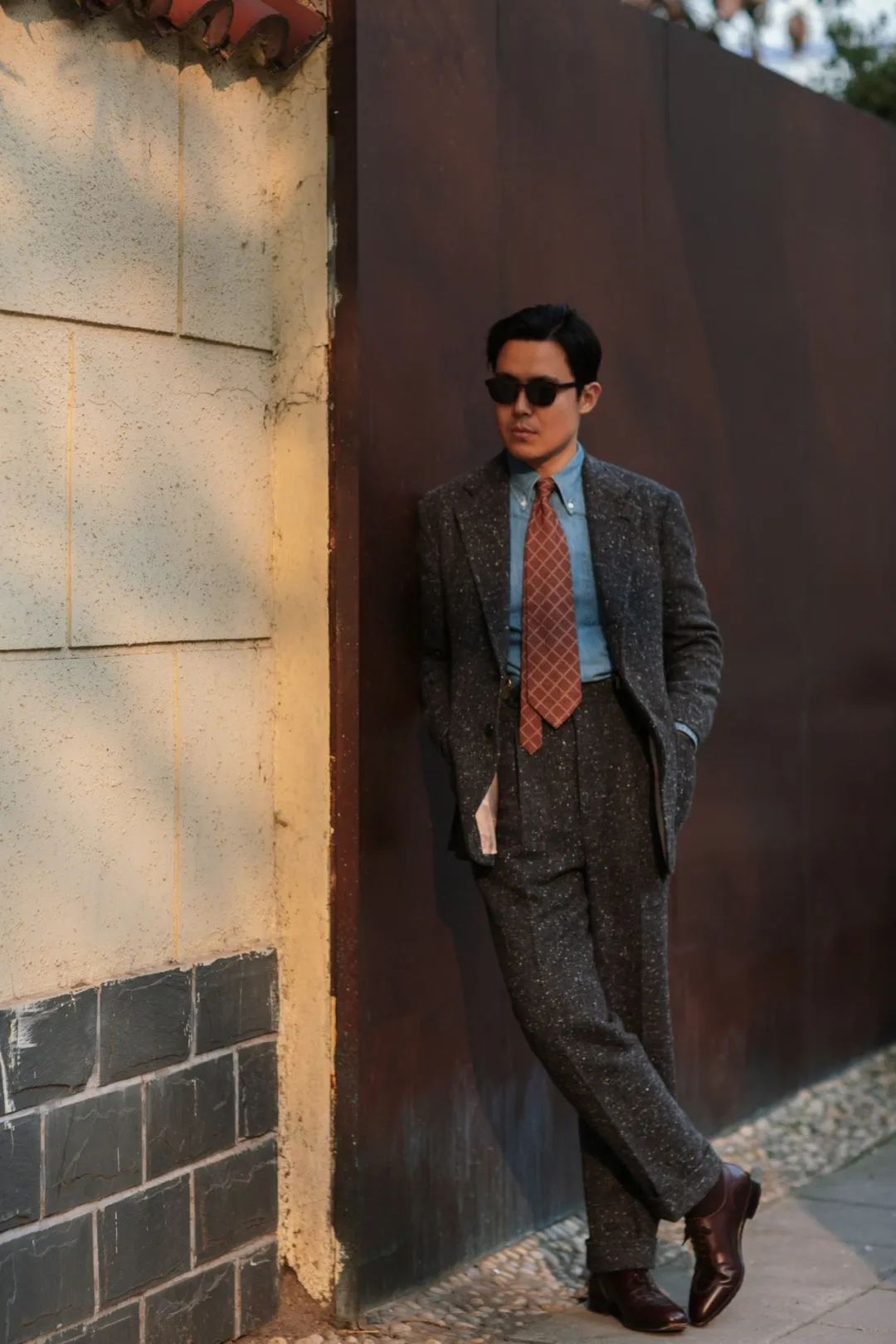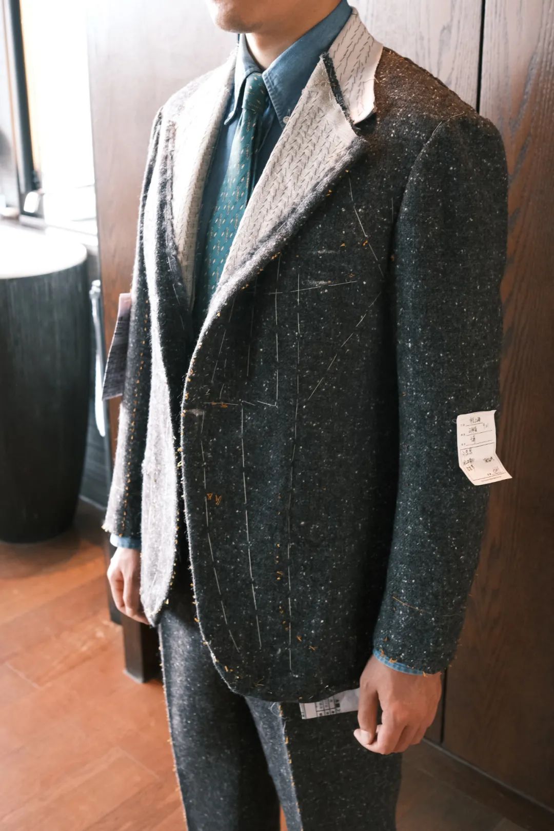 料子选了一块W.Bill的Donegal,这类很乡村运动的料子要怎么用在城市和如今的日常生活中是个值得考量的问题。