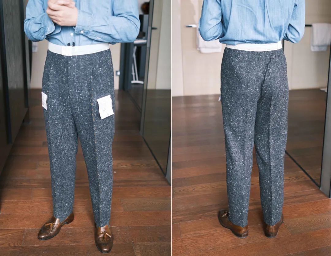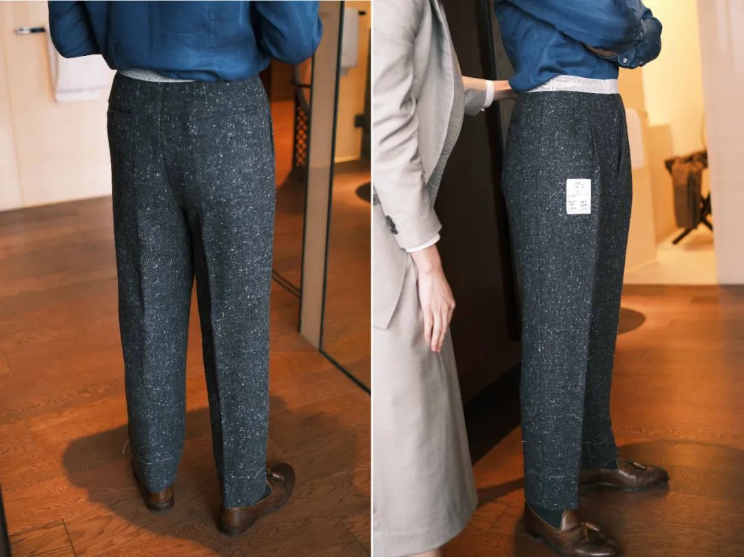 裤子除了膝盖以下略小了一点,在初次做我裤子的裁缝中绝对属于效果好的,我腿型左右不太平衡,一般第一次都不是太理想。