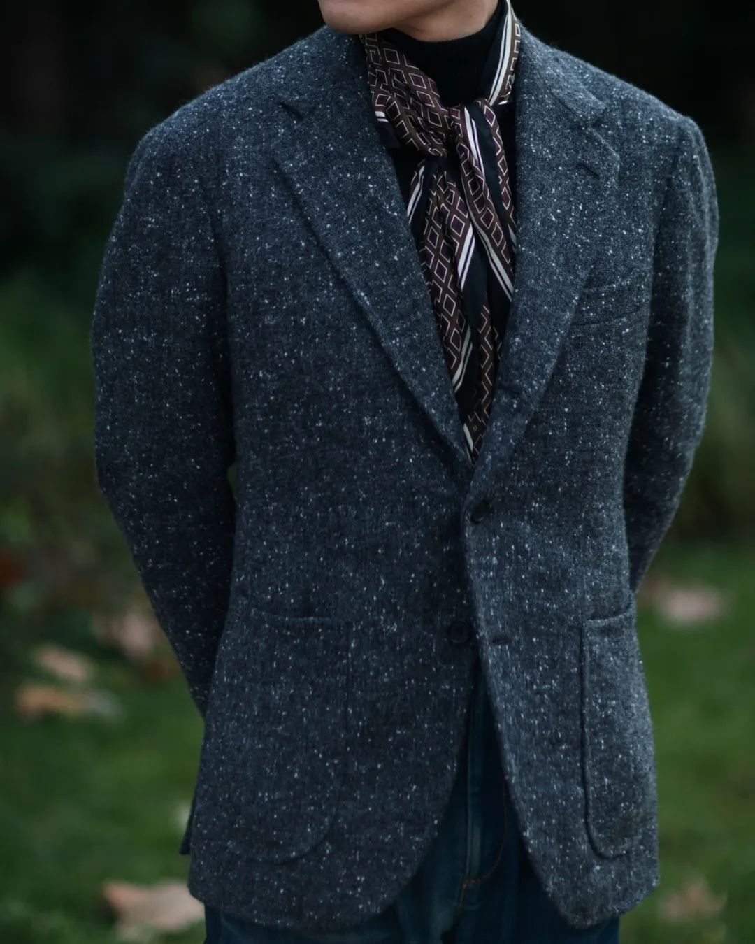 Donegal料子够厚,在同样维度下,确实比我其他冬天更精纺的衣服要紧一些;也有一些300多克的Donegal在精纺厚度里维持很好的特色外观。