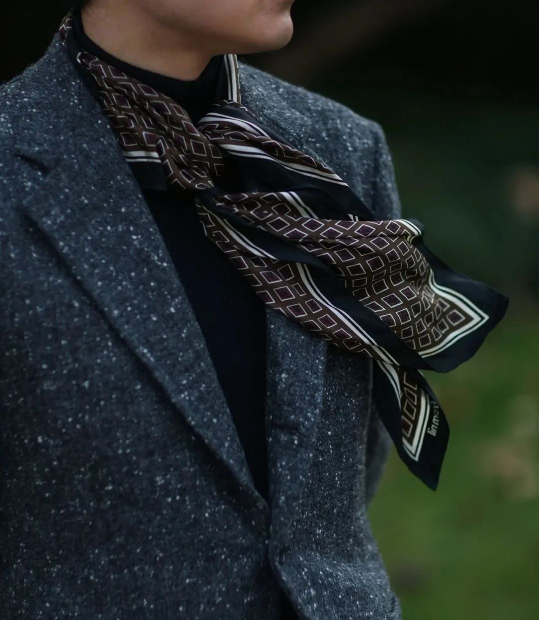 她觉得真丝的细腻可以平衡花呢的粗犷,暗金色更与深灰色相得益彰,配色的初衷和想法都有她的独特品味。