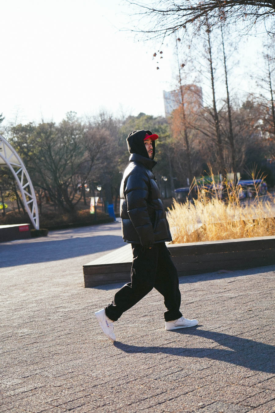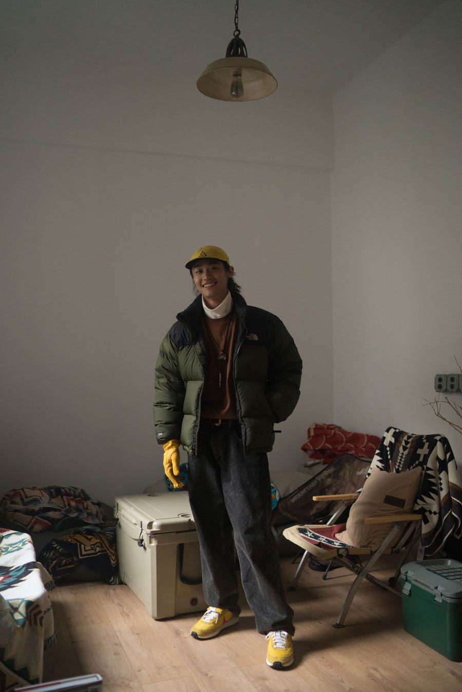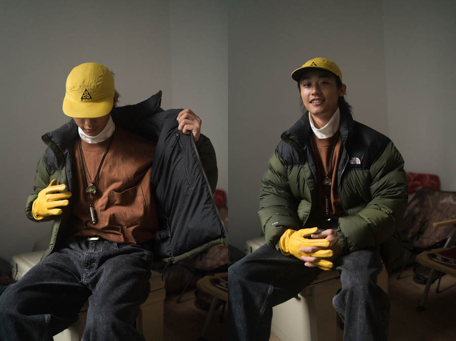 稻本:本身自己应该是一个实用主义的拥护者,选择羽绒服的话会考虑衣服的功能性,面料防水性、蓬松度等。因为南方的湿冷天气缘故,冬天降温一般都伴随着雨水,所以面料的防水性对于我来说很重要。
