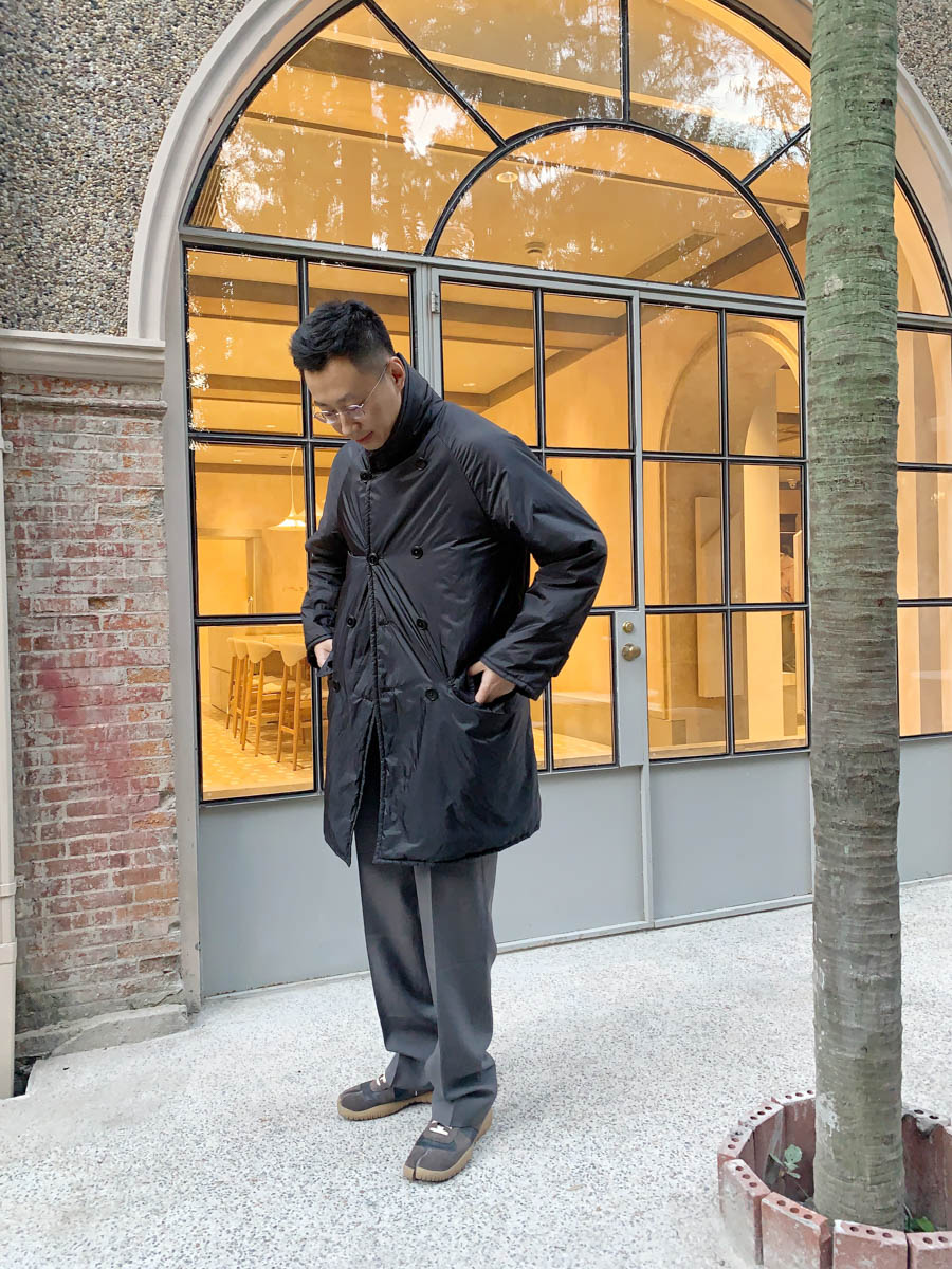 唐敬文:今天穿着的是日本品牌comoli,很推荐30岁以上的男士的品牌,没什么华而不实的剪裁和不必要的设计,很完整的在体现衣服对于穿着者本身的体验感,这件其实不能算是羽绒服,内部填充的是杜邦公司的填充棉,很不错的材质,携带也很方便。