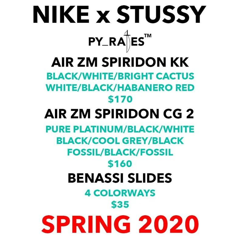 2003年,Nike首次发布了Air Zoom SpiridonCage 2,然后就一直影响至今,Stussy是美国的鼻祖级潮牌了,起源于美国加州的,Supreme、Palace、KITH这些现在地位超然的潮流品牌都是受到Stussy的启发创办的。