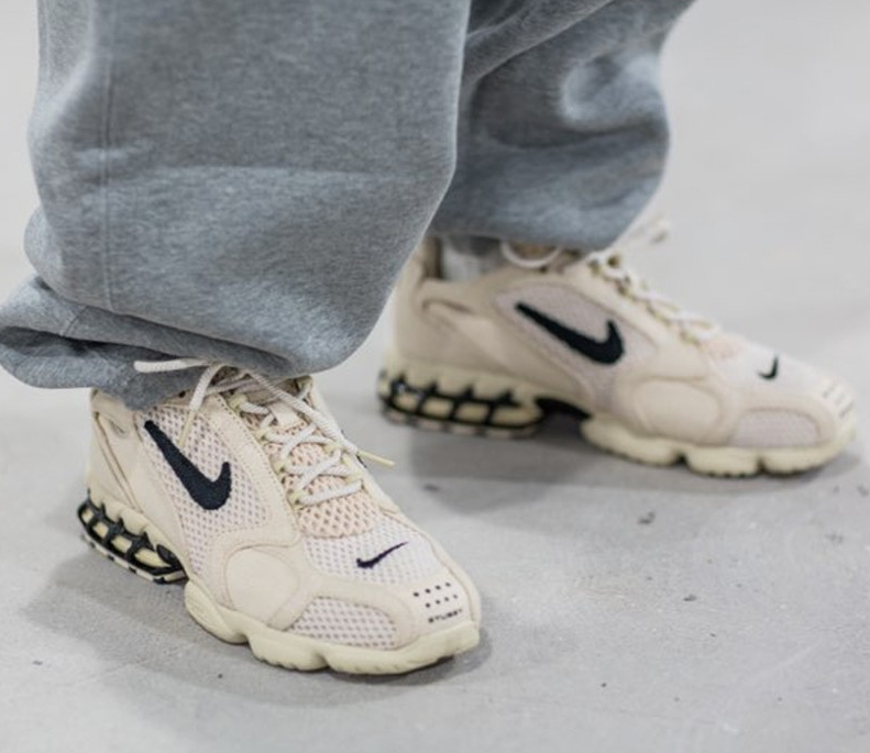 再甩点专业的知识吧,Nike X Stussy Air Zoom Spiridon Cage 2是以“支持运动而凝聚在一起的群体”为灵感,中底配置了轻质Phyllite材质,后跟搭载了笼式Zoom Air缓震配置,外底采用耐穿橡胶贴片……如此一来,就打造出了这款拥有轻盈迈步体验,同时为足部提供了有效防护的跑鞋。