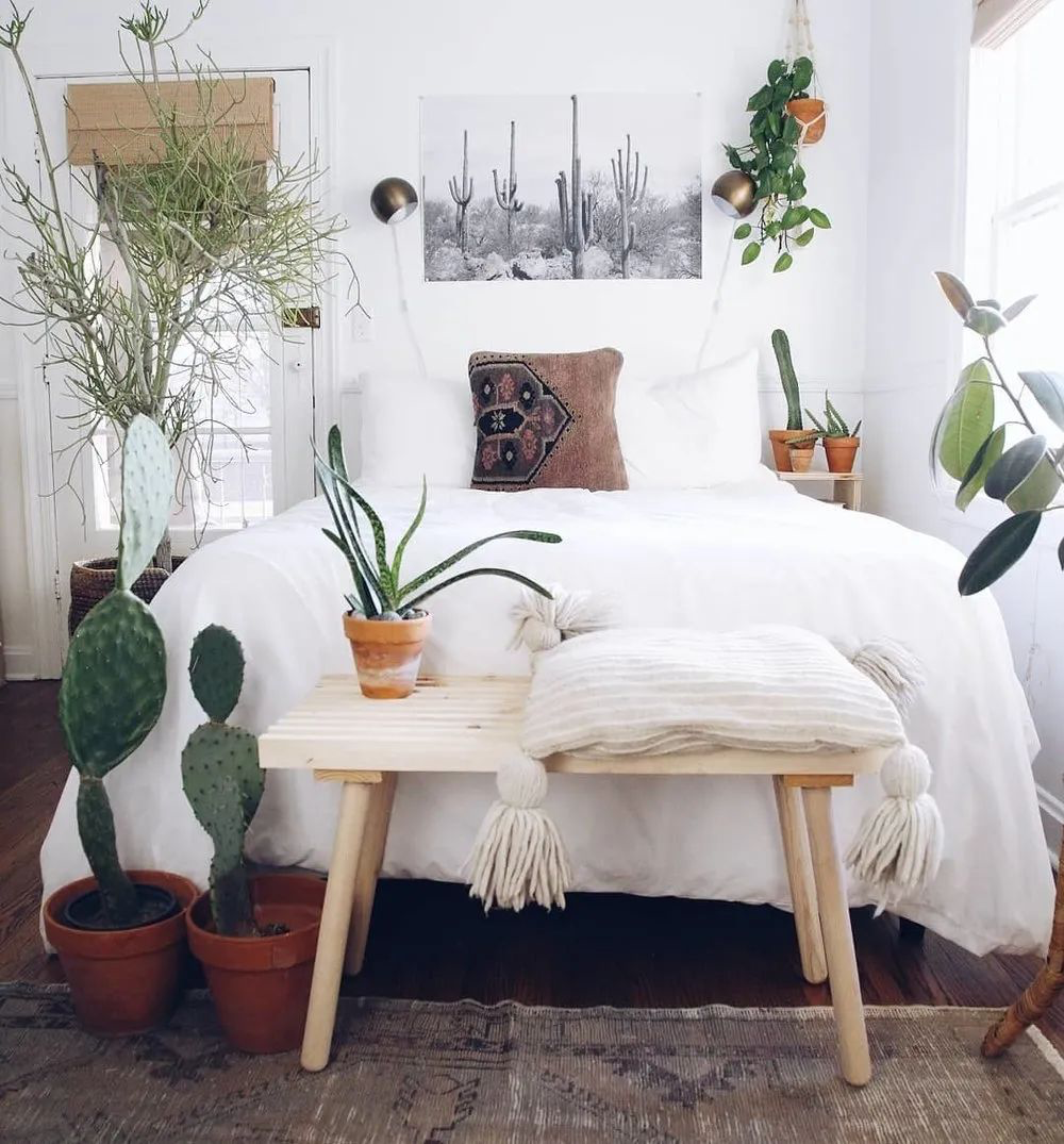 从卧室风格考虑,植物和白色系最为搭配。值得留意的是,在植物的选择上尽量避免有可能划伤我们皮肤的植物,它们会为半夜起床去卫生间的时段埋下一些隐患。如果卧室内的植物较多,也应该合理安排它们的位置。