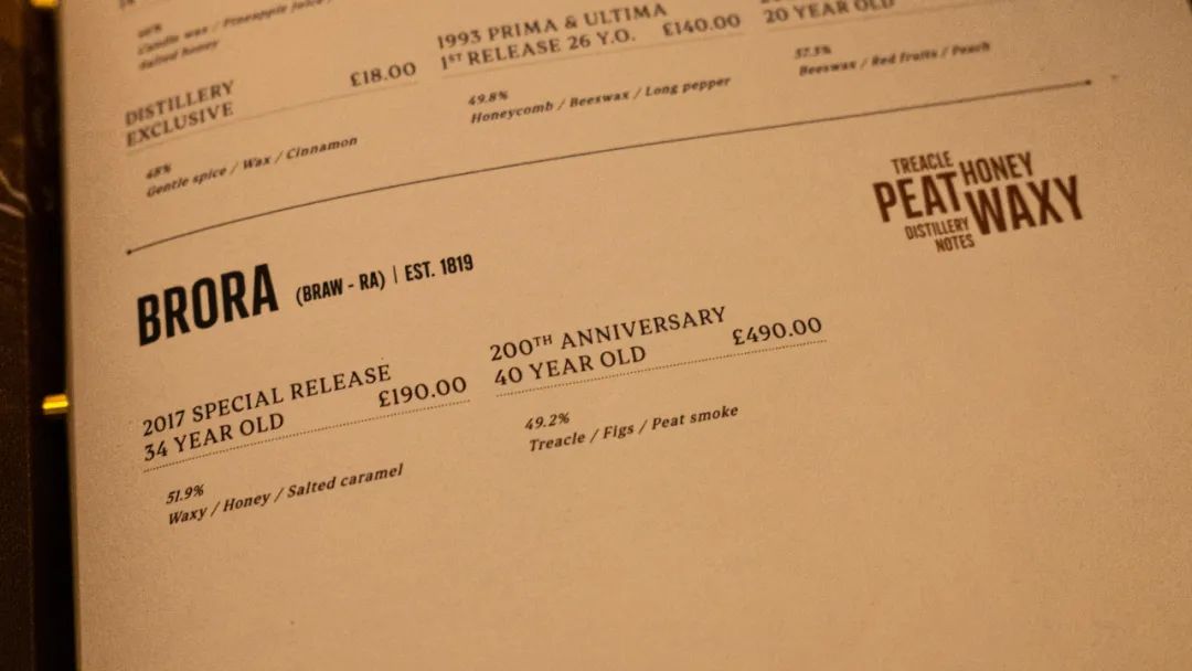 当然也不乏波特艾伦(Port Ellen)和布朗拉(Brora)这两家“消逝酒厂(曾经)”的单杯。Bar Tender还透露,酒单上的几款并不是全部,只能说上限很高了Image