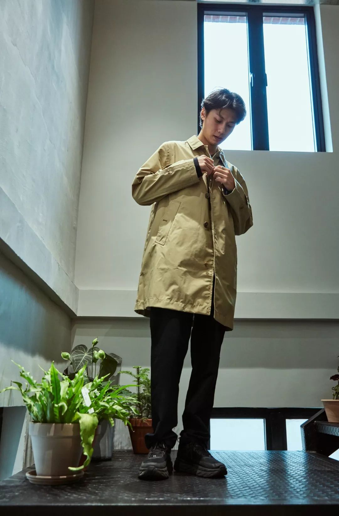 生活化的将产品进行搭配,简单舒适的演绎方法没有夸张剪裁和大面积鲜艳颜色的堆叠用简单的穿衣技巧就能硬朗中带着柔和。