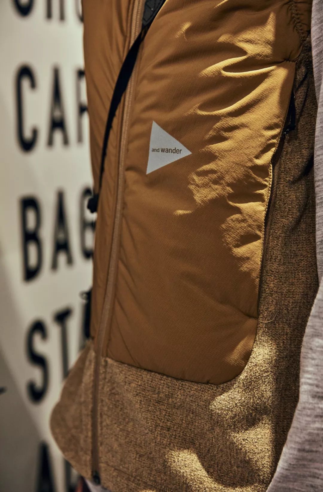 日系 City Boy 一定要尝试穿搭!and wander 棉服拼接绒面的设计是主理人的良苦用心,正面的尼龙面料抗风防水防割,背面的绒面舒适且锁住温度。同时不管是与卫衣还是针织衫搭配即能保暖又能体现出层次感,是一款可以内搭也可以外搭的通勤佳品。