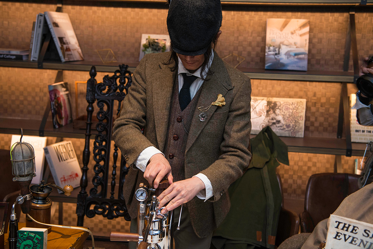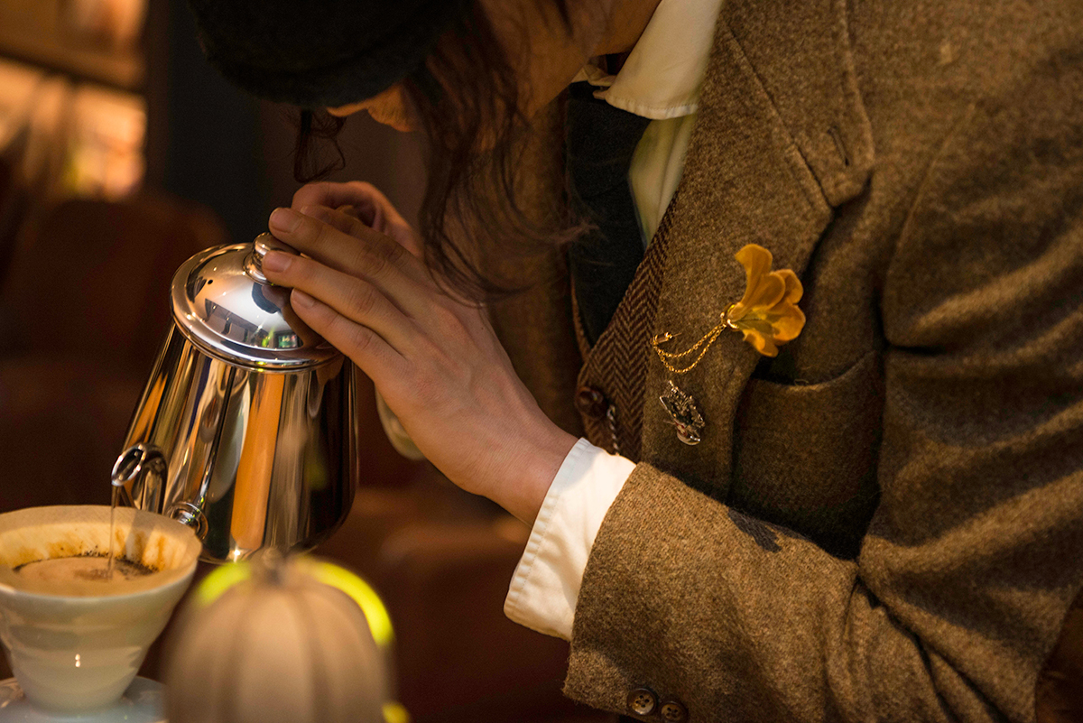 随后,让我们跟着镜头看看这场复古私享酒会都有哪些好玩的?少不了的一个环节,那便是主办方之一Clark韩靓亲自为大家手冲咖啡作为开场。