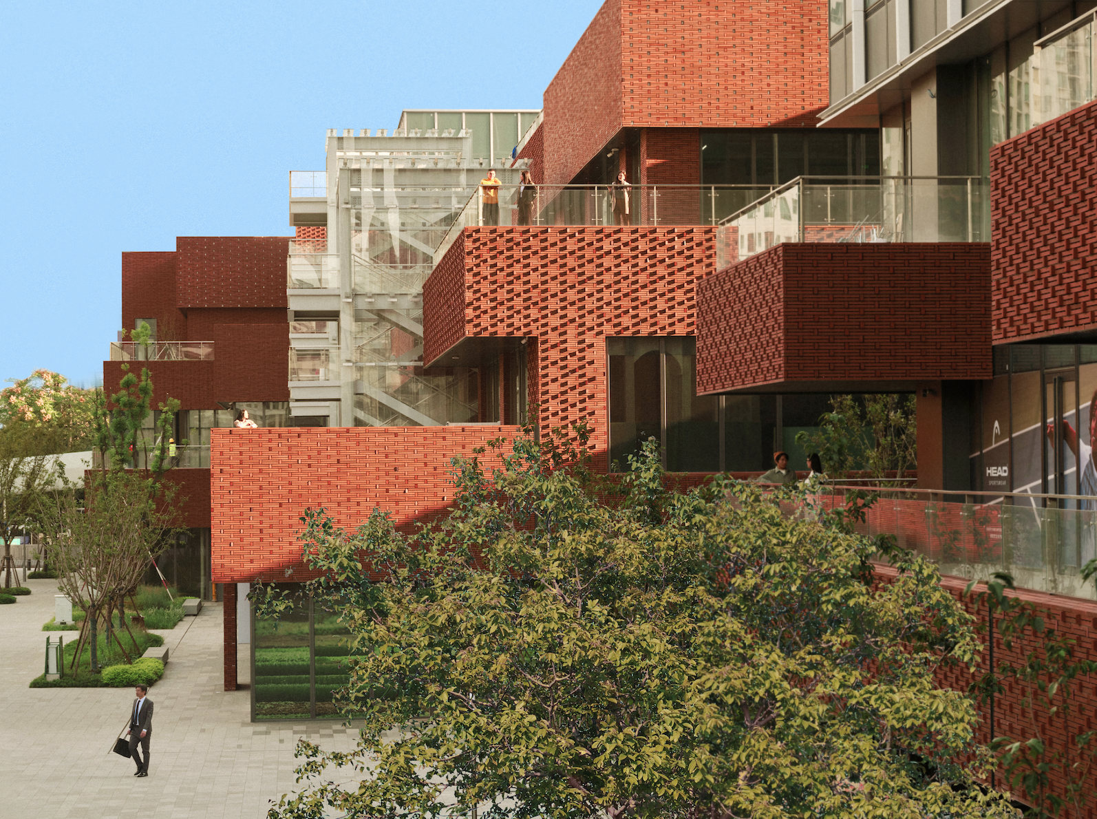 PAC 的整体商业体量为4.3万方,并且融合了办公、商业、自然环境、文化艺术和社交体验等多个复合型风格业态体验,然后以「盒子」商业为主体模式,搭配着抢眼的红砖幕墙,以及各类可持续概念的融入。让社区生活和传统街区,与 PAC 的时尚风格体验形成了无缝式的开放性连接。
