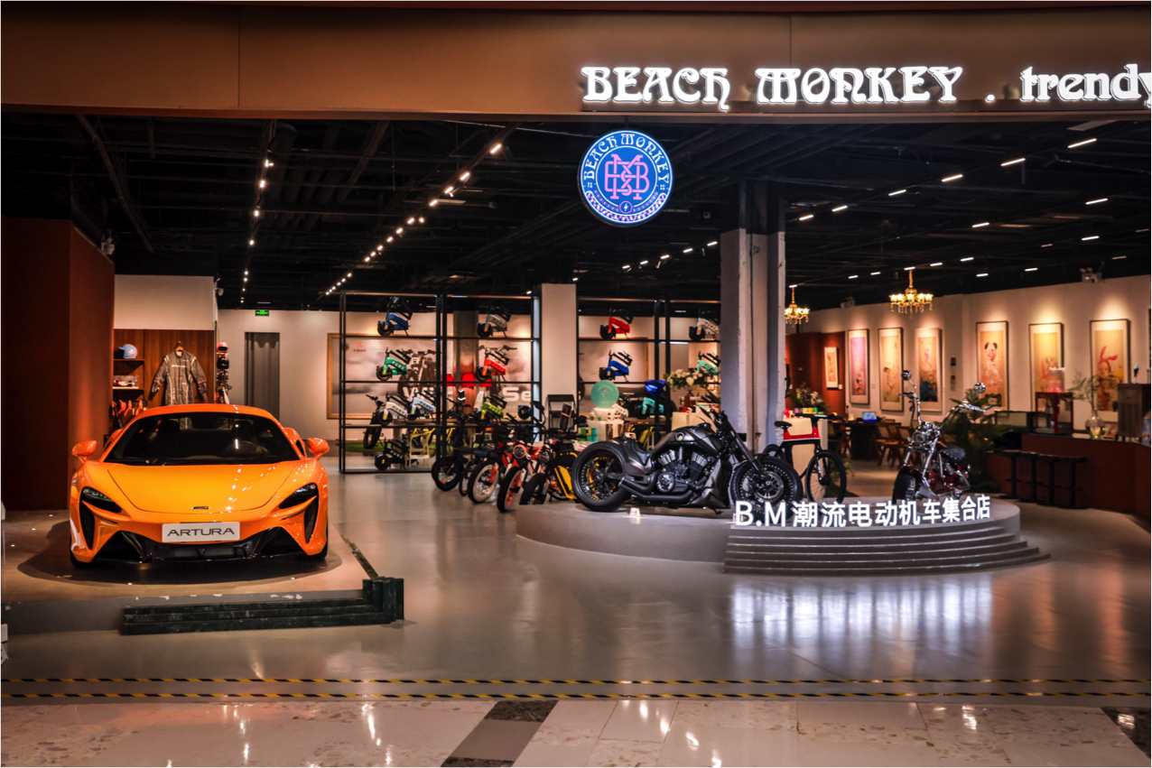 Beach Monkey是一家成立于2022年,主营潮流电动机车及周边的线下集合店品牌,线下门店遍布上海繁华路段,如白玉兰广场、K11购物中心、吉宝静安中心等。旗下代理来自美国、英国、德国等国家,数十个中高端 E-Bike 品牌,并不断增加新品牌及新品类。作为国内潮流电动机车品牌引领者,BM更为追求自由、个性的年轻人,以骑行为桥梁,搭建了一个年轻人的社交场所及平台,感受速度与激情的碰撞,主张潮流生活方式。