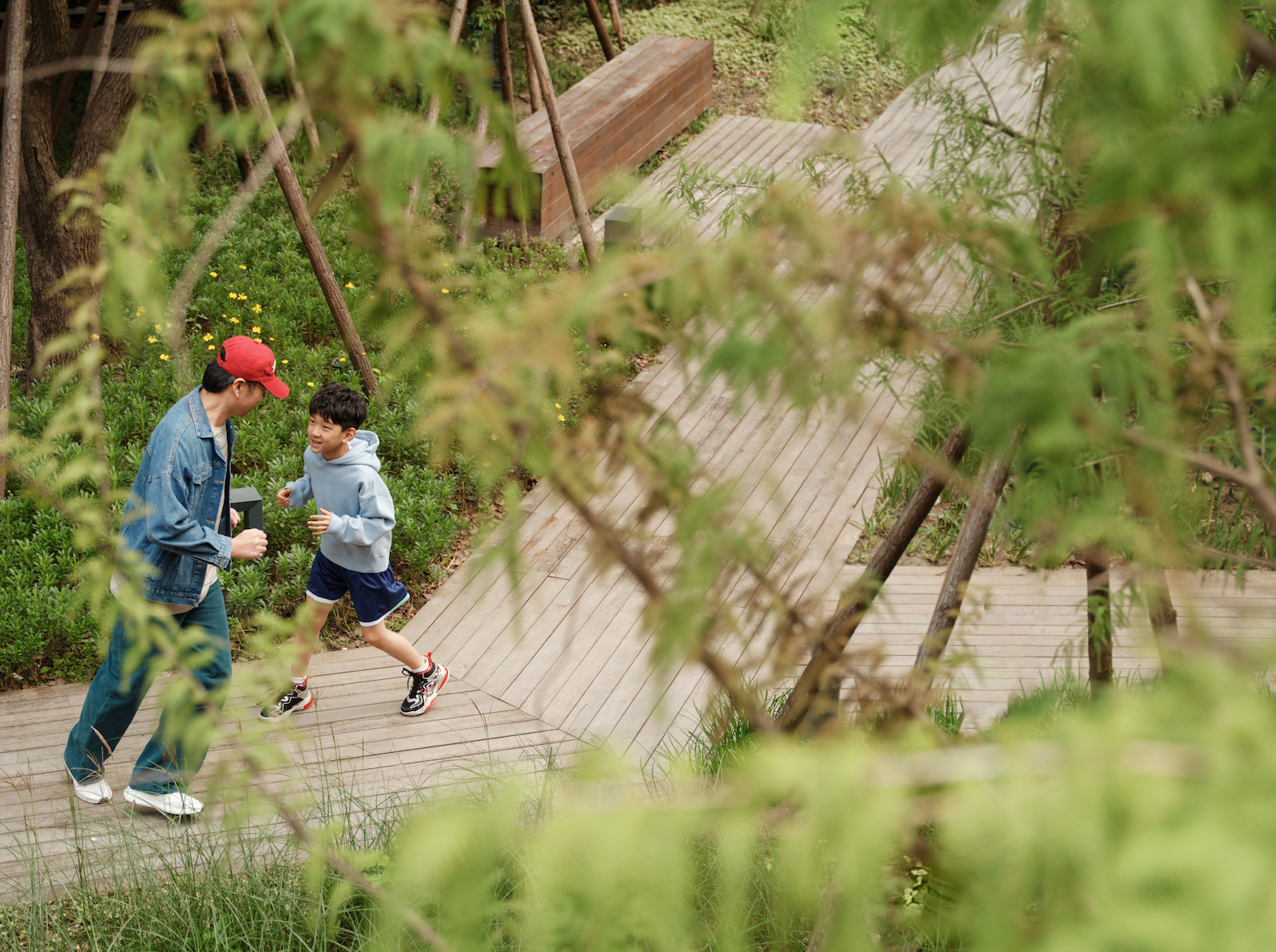 其次「蛋壳露台」与「好白相活动场」的打造,则让这种自然体验能够彻底融入生活,而并非日常的背景。此外在露台空间,通过阶梯的组合布置也让整个体验增加了更多的流动与互动感。当然刚需的「宠物乐园」空间,想必未来也会成为爱宠人士最爱的区域之一。