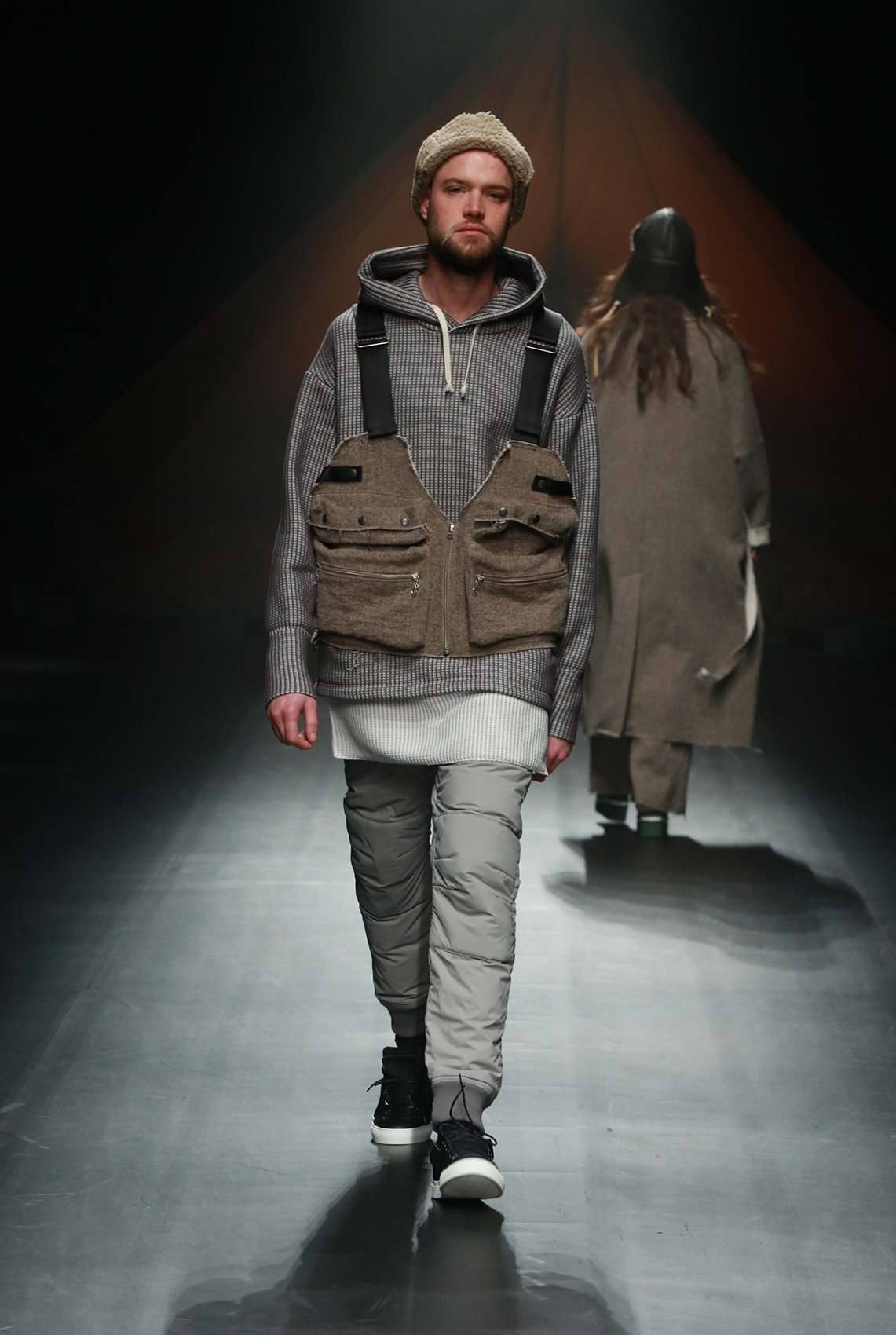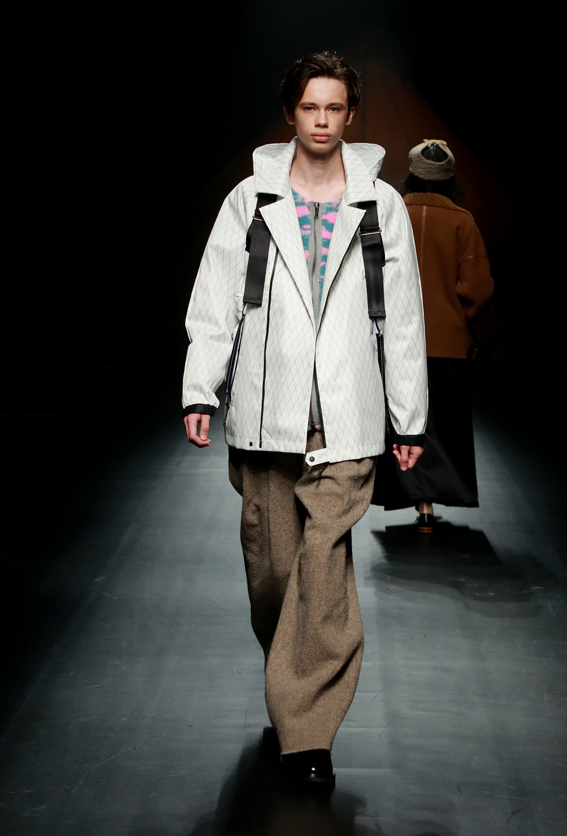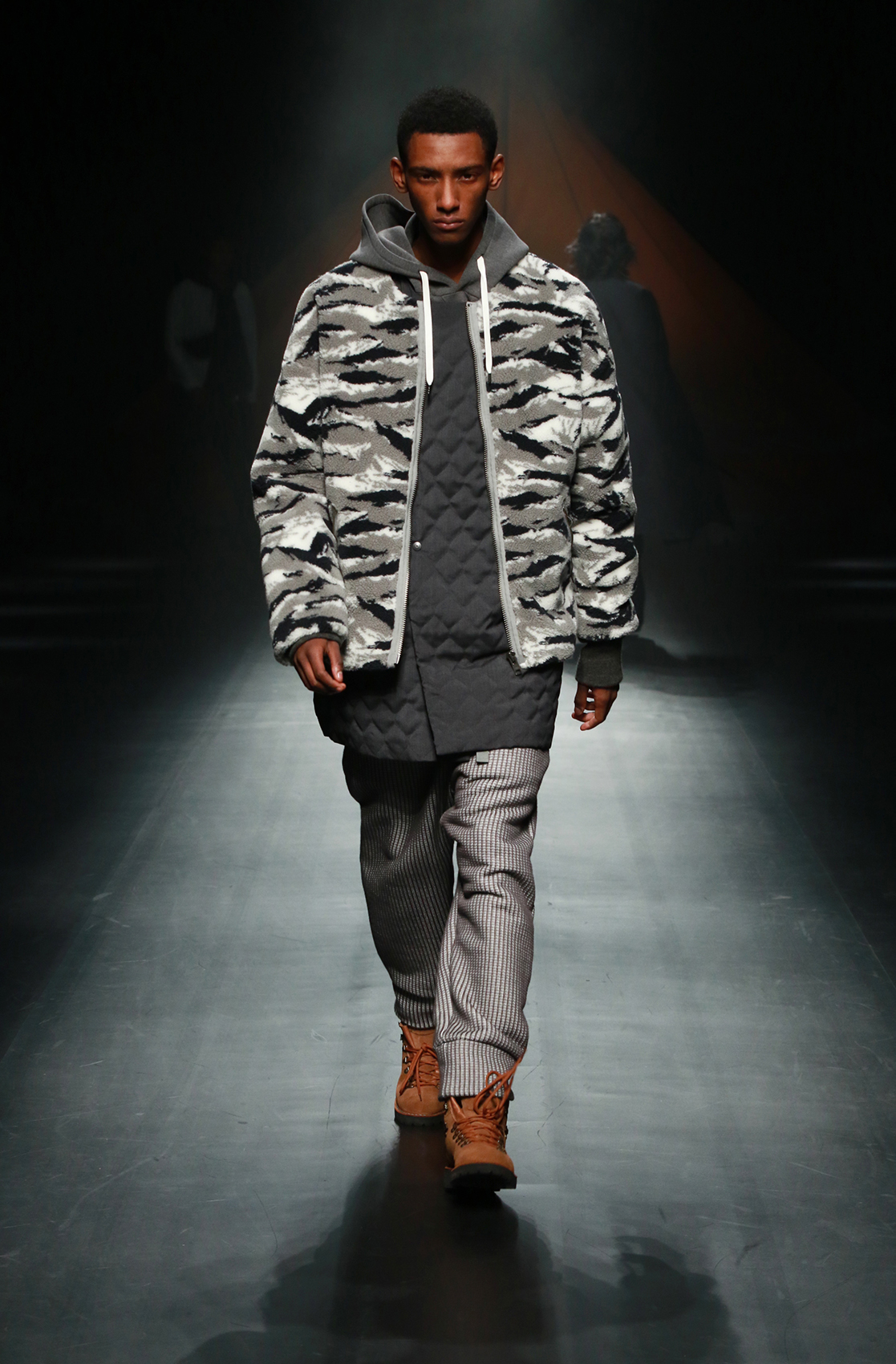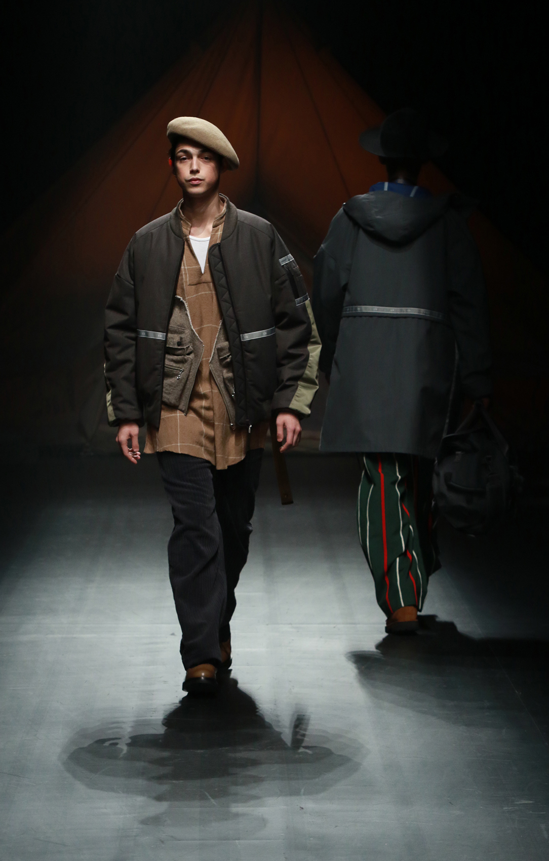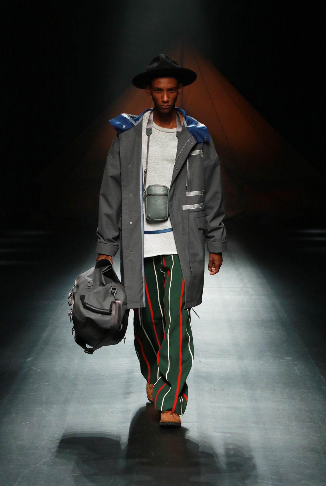 在近日F/CE.®发布的2018秋冬系列中,机能主义又被他们推向了新的高度。整个秀场的布置也仿佛营地一般,诉说着都市旅人们从街头走向自然的迫切需求。在本次系列中并未出现太多格纹设计,反而是在细节处以各式的条纹图案进行呈现。其次与传统机能剪裁有所区别的是这次对于oversize风格的探索又有了新的思考,高科技的面料搭配和舒适的剪裁营造出的特殊效果,让都市和户外出行也更加具备时尚随性之感。