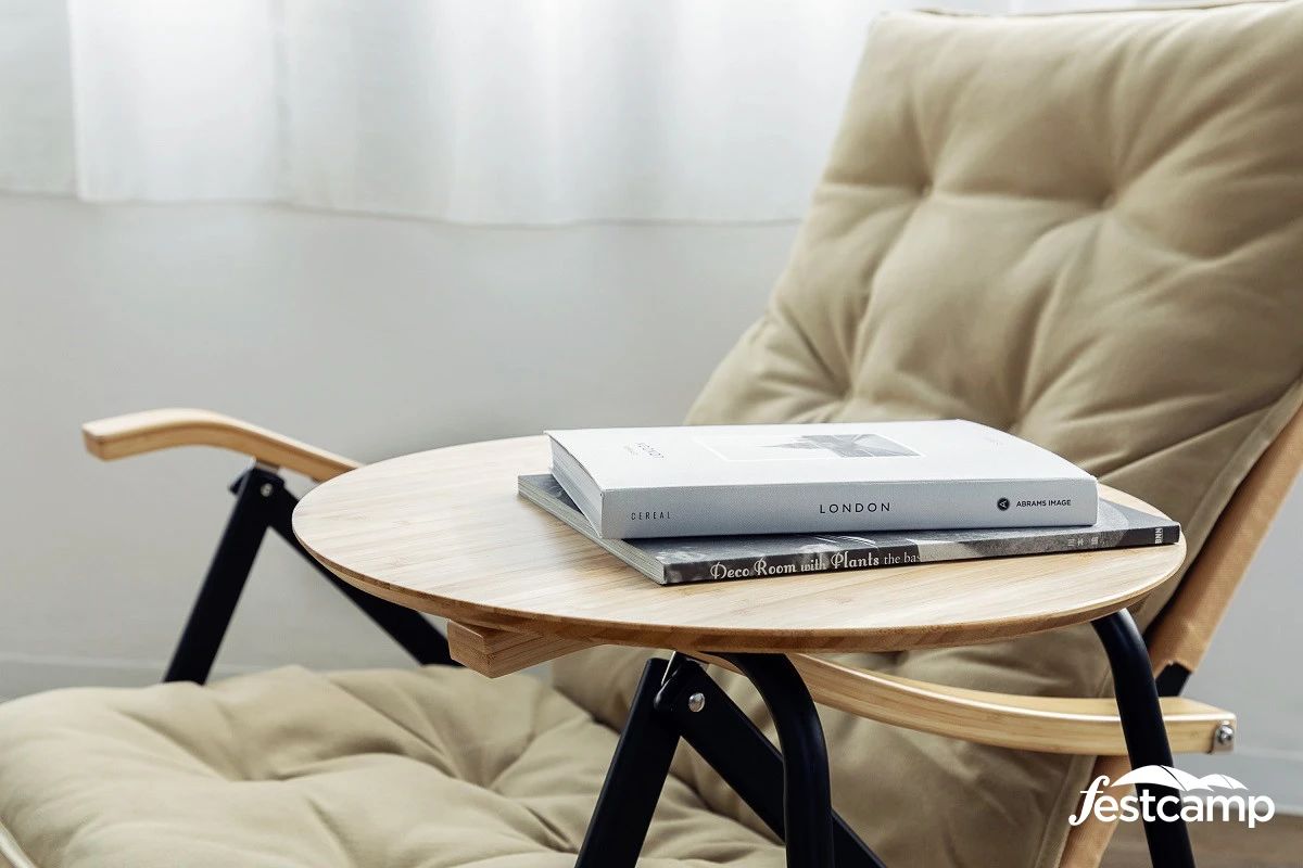 如何把室内的茶几用到户外,高颜值还易于携带?飞士康竹圆茶几就能轻松做到,竹制台板与可拆卸铝合金支架,不仅设计美观,线条流畅,而且能摆放咖啡杯与户外灯具。搭配飞士康折叠椅系列,能轻松拍出露营好照,是“打卡”最佳搭配。该茶几可以单人或者双人使用,让露营生活变得更精致、更时尚。
