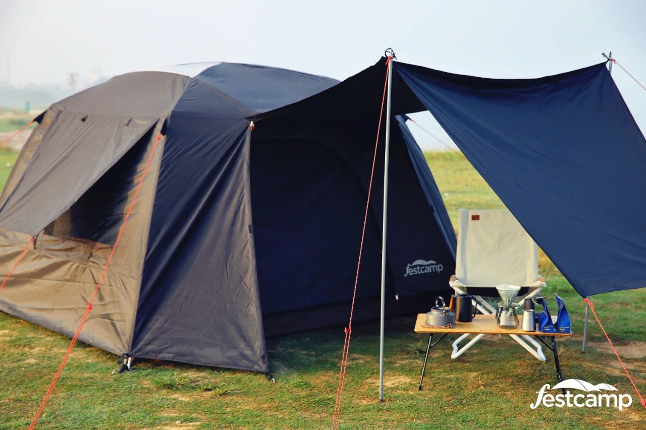 作为露营必备清单产品,飞士康绿野帐篷既保持传统的优点,又注入新意,是实用性强的家庭用帐篷。双开门设计,前后具有延伸式门厅,不仅增加了户外遮阳空间与空气流通,而且可以放置多种户外用品,进一步拓展了活动空间。