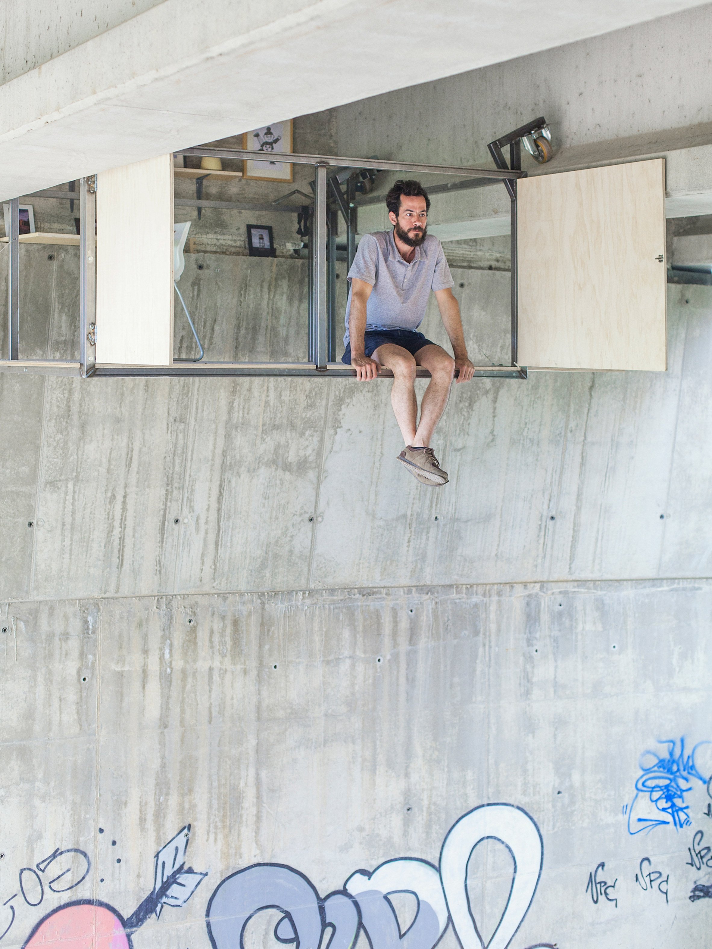 在西班牙Valencia市的一个大桥底下,Fernando Abellanas新建的工作室就实现了这一愿望。这个隐秘的工作室从构思到建立仅仅用了不到两个星期。金属钢架结构和木材作为整栋建筑的主体,大部分家具被固定在水泥墙面和承重结构上,而滑动滚轮装置则负责建筑的通行和支撑。不过为了避免周围居民和当地政府的干预,设计者目前拒绝透露小屋的具体位置。