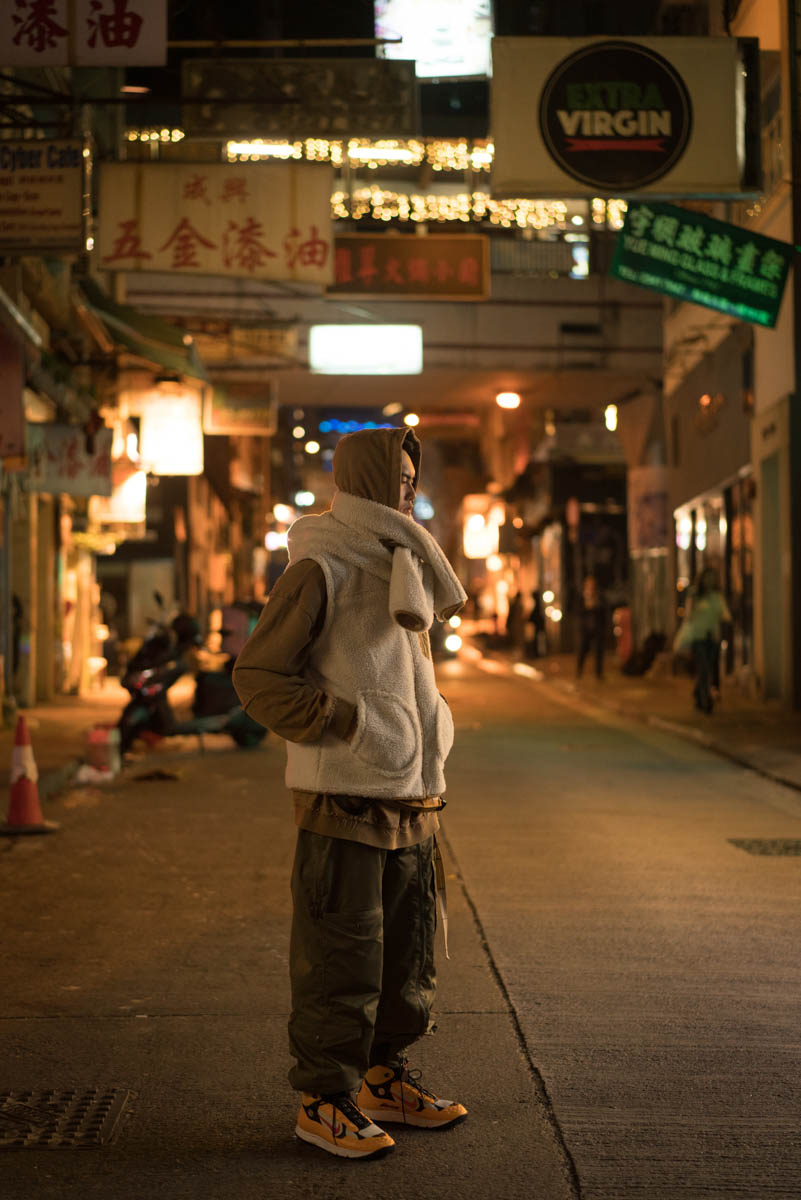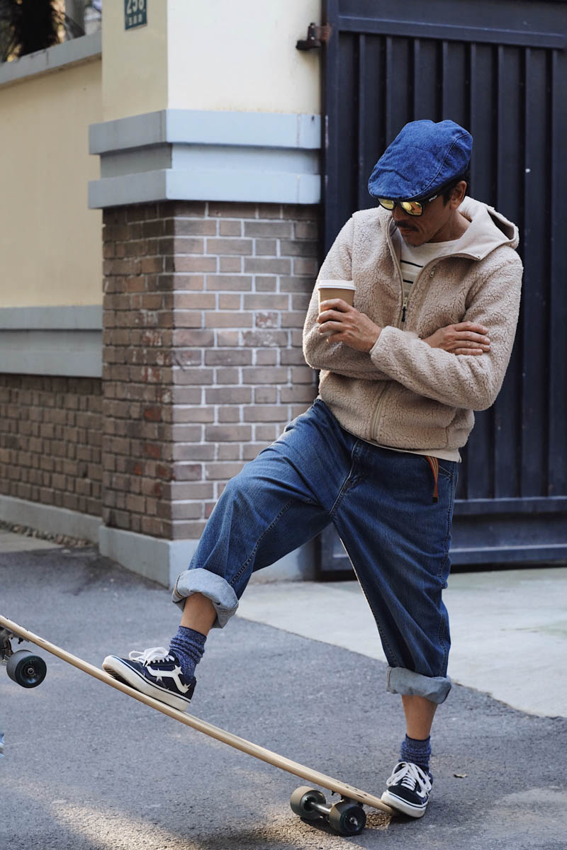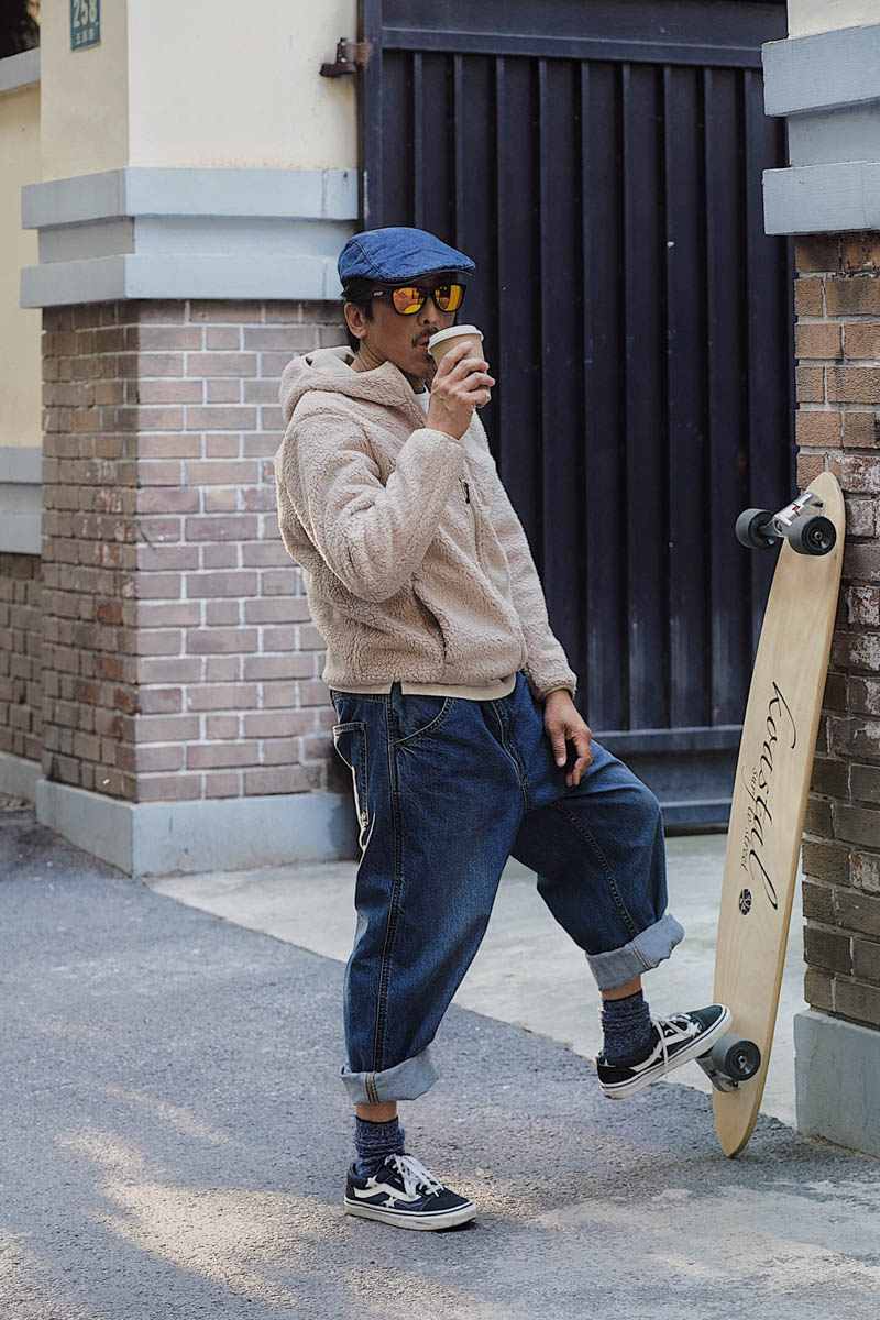 王凯文:不会,在挑选摇粒绒的时候,我会选择略微Oversize的剪裁,但是又不能太偏大,因为本来摇粒绒会略显臃肿,合身偏宽松就正好,里面还可以穿件卫衣毛衣带出层次感,外观上则以简单为主,我觉得摇粒绒白色是最为适合的颜色了,可以隐藏一些细节的小设计,却不能过于复杂。