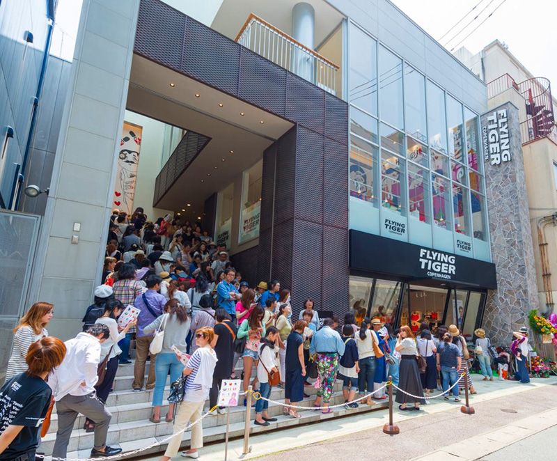 Flying Tiger 1995年创立于丹麦哥本哈根,这间小小的杂货店一开就是22年,不仅没倒闭,还越开越大。Flying Tiger的增长速度快的惊人,即使每周开2-3家店,品牌Ins上依然有人苦苦哀求店铺什么才能开到自己的城市。2012年,Flying Tiger在日本大阪开了亚洲第一家分店,开店第一天就引来400人排队,开业三天全部商品都被卖光,最后只能休业整顿。