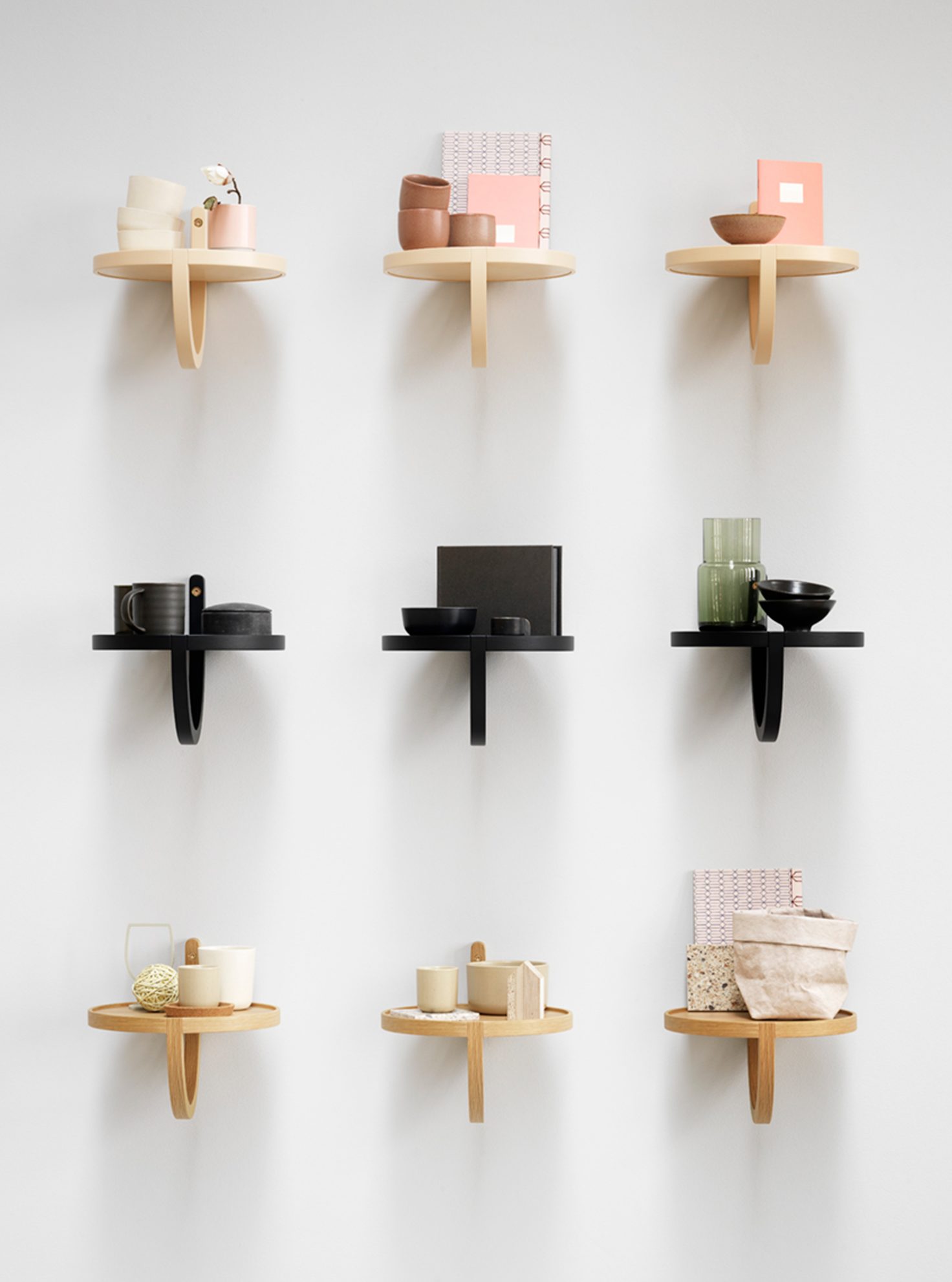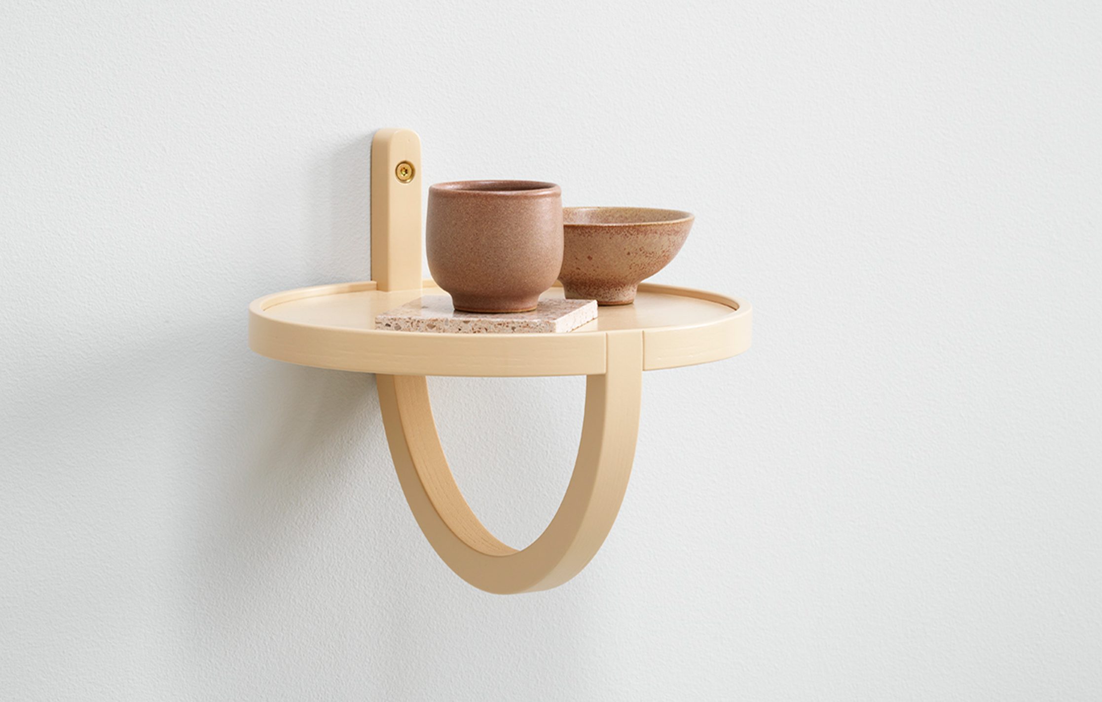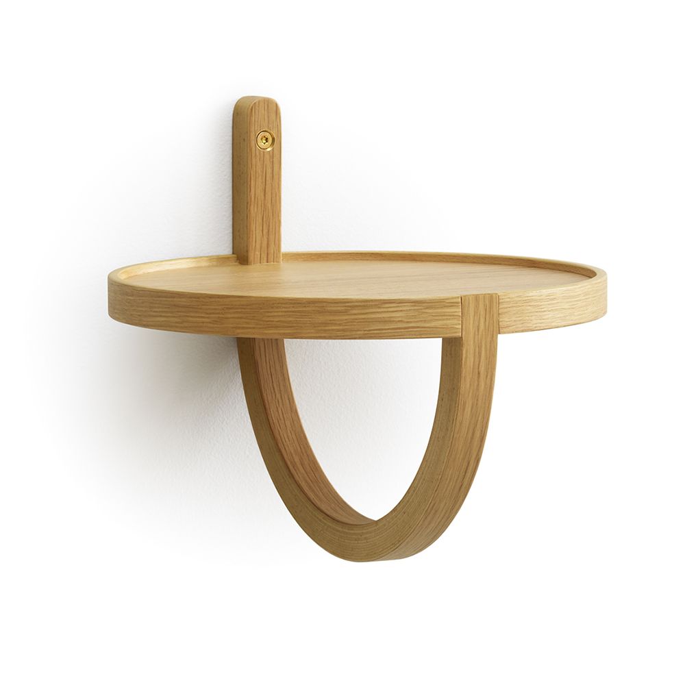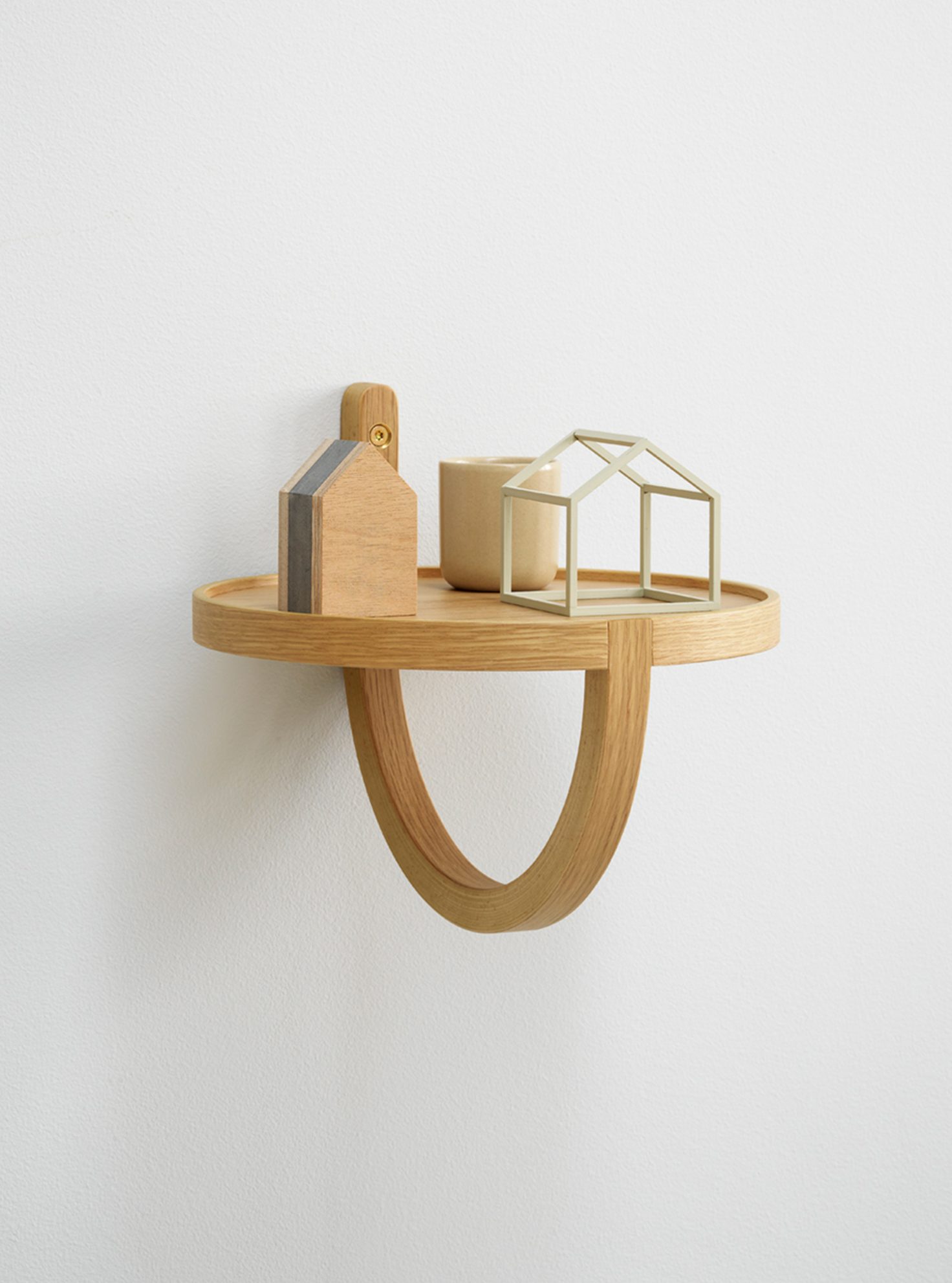 小巧的外观适用于任何一个位置。木质外观简约大气,上方的搁板可以置物,下方弯曲的半圆还可以用来悬挂衣物、雨伞等等。