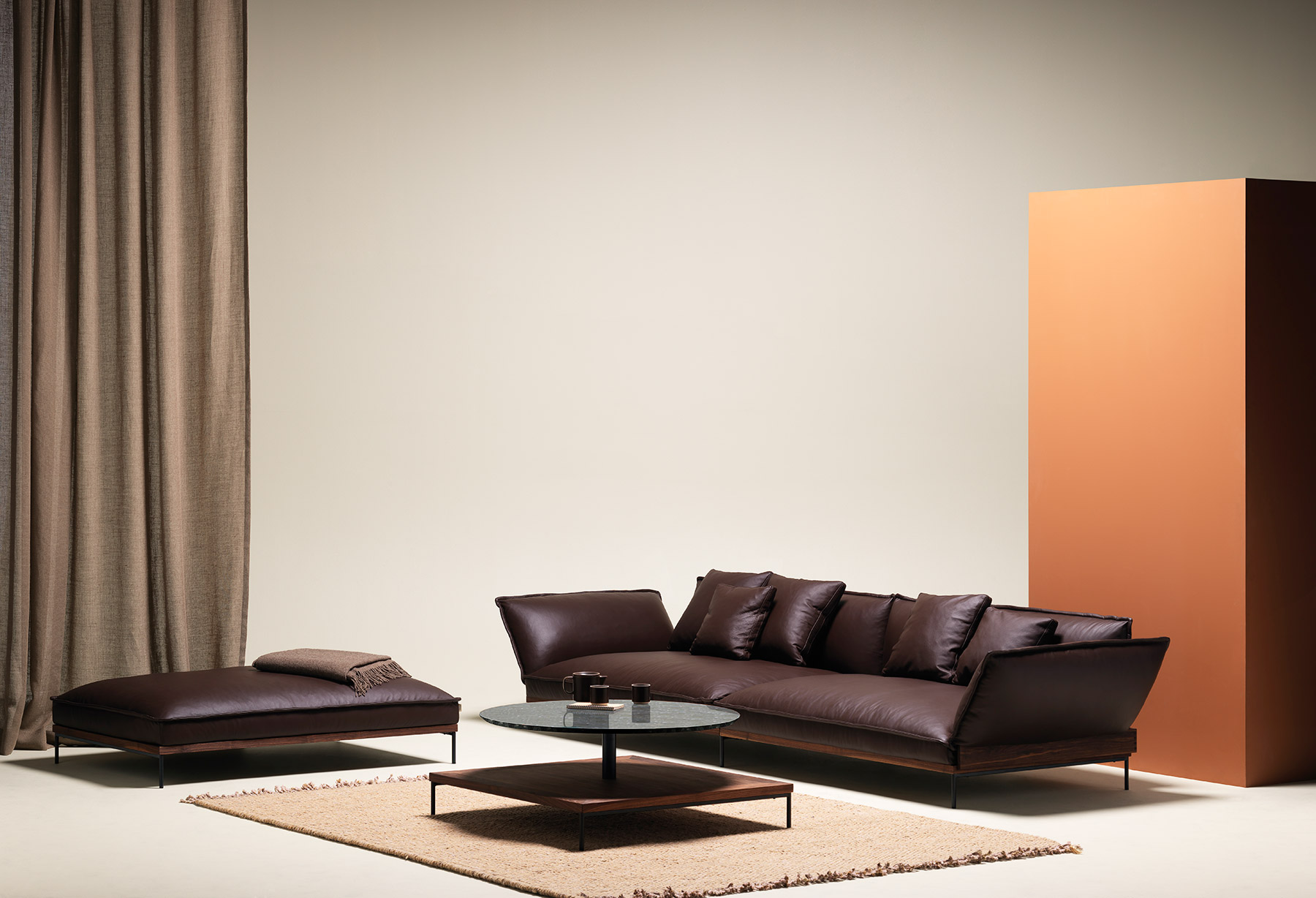 Tiki 是一款简约的沙发,微曲的线条简洁流畅,靠垫是可以翻转的。皮制的表面十分光滑舒适,在阳光的照耀下泛着迷人的光泽。