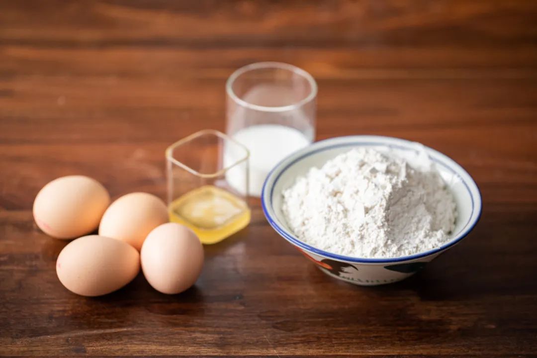 4颗鸡蛋,20g蜂蜜,20g玉米油,60g白砂糖,90g牛奶。