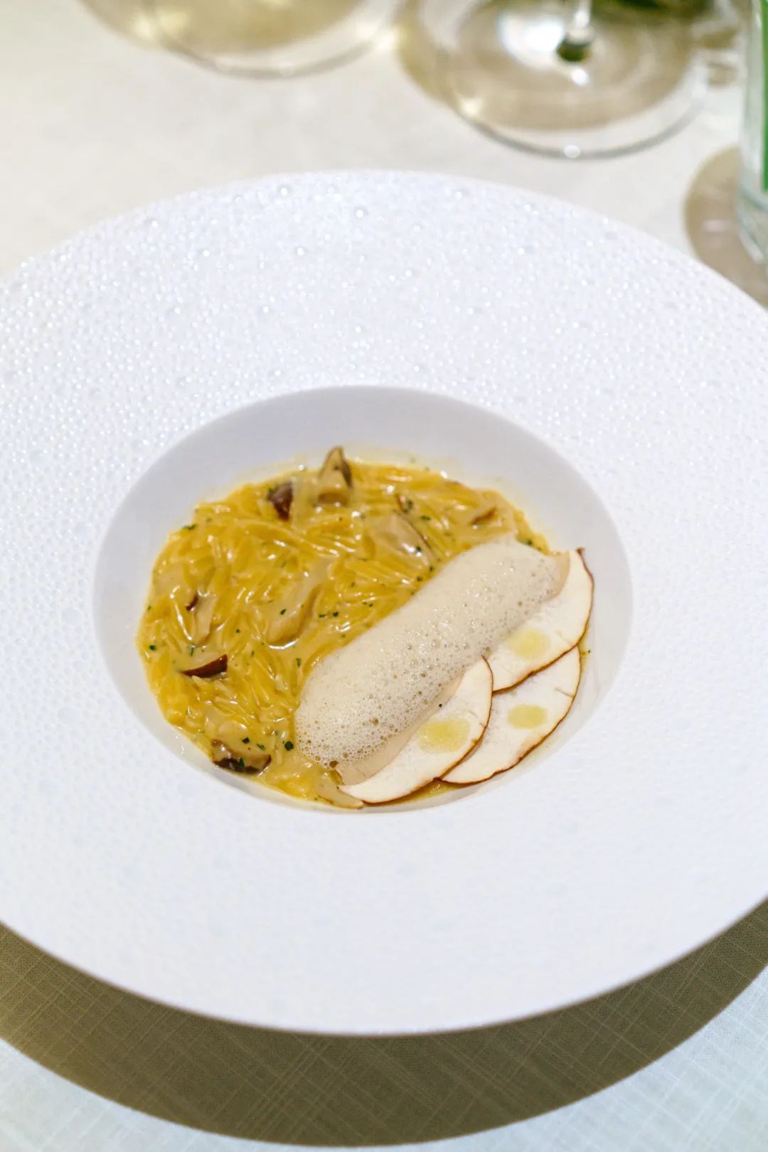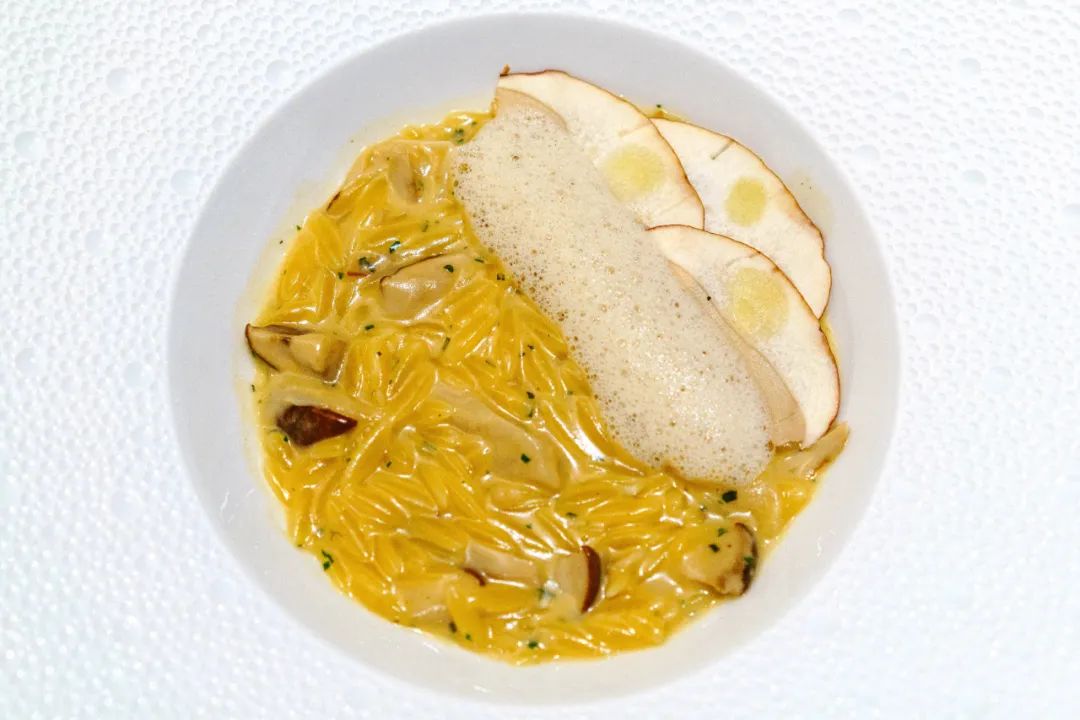 Risoni pasta 是一种意式米型面,一粒一粒的很有嚼头,除了风味浓厚的芝士和牛肝菌,下面还藏了些腌生牛肉,油脂和风味随搅拌慢慢化开。