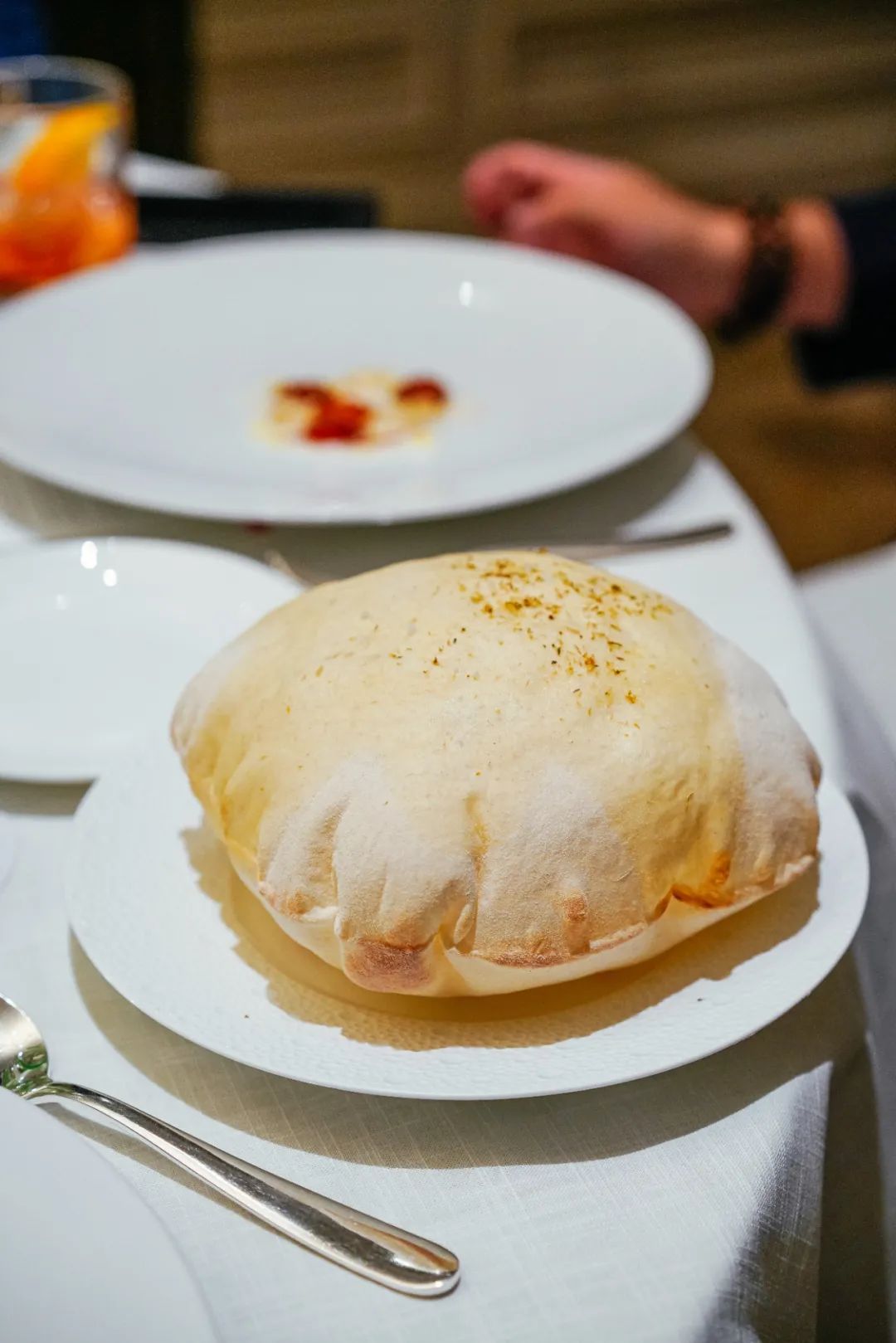 上面是鱼子酱,下面是焦糖洋葱,挞壳实在做得太好了,比法式酥皮更干爽,不仅容纳所有元素,自身的甜脆补完了食材的鲜味,反复回味的一口!