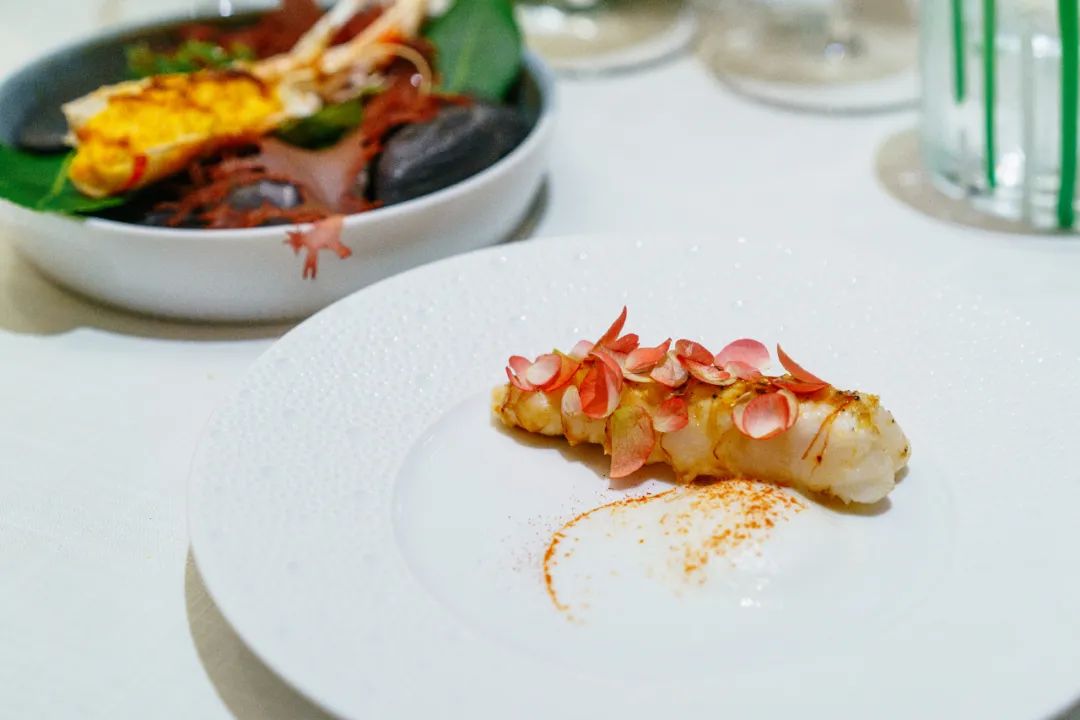 DV这两年菜单上出现越来越多中国食材,花胶、鲍鱼、梭子蟹……黄鱼据说也是主厨经过几轮试菜,才敢端出来。