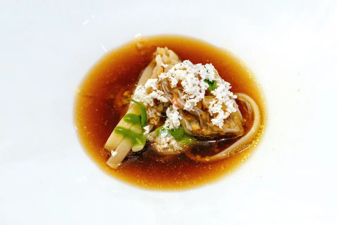 第二种蟹肉扁面,浇头是雪蟹、茄子、Ricotta奶酪。