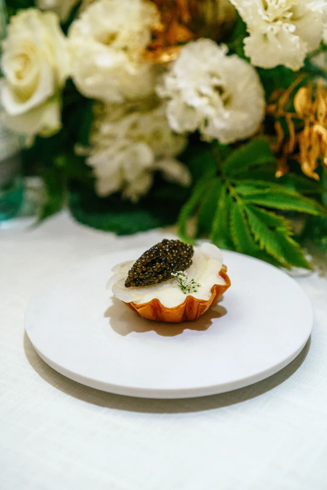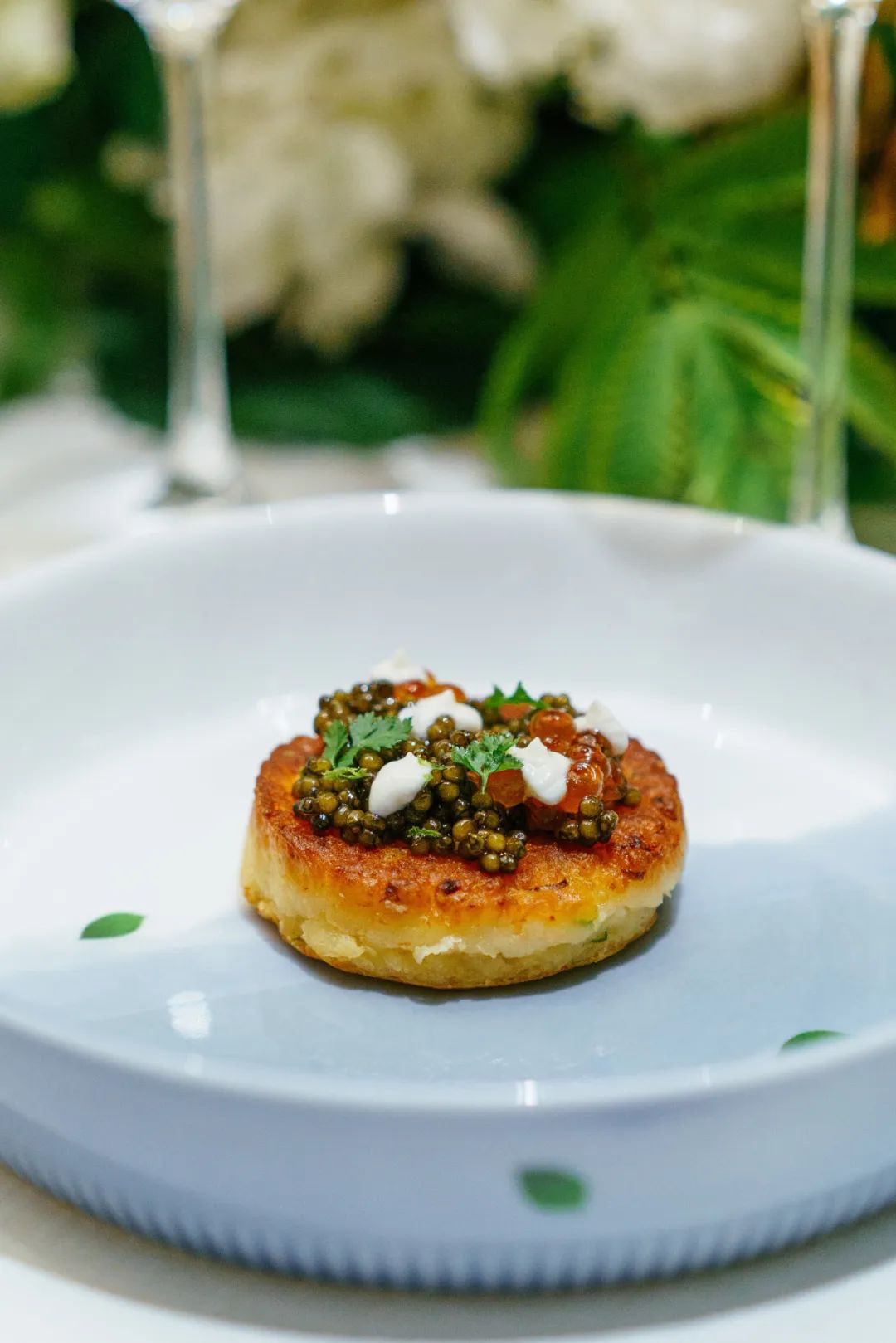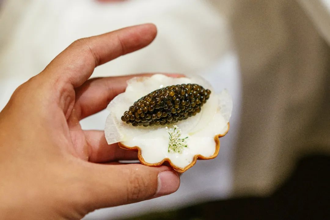 前几个都是经典菜,或者经典菜的改编版,这一道是我第一次吃——鱼子酱芜菁挞。