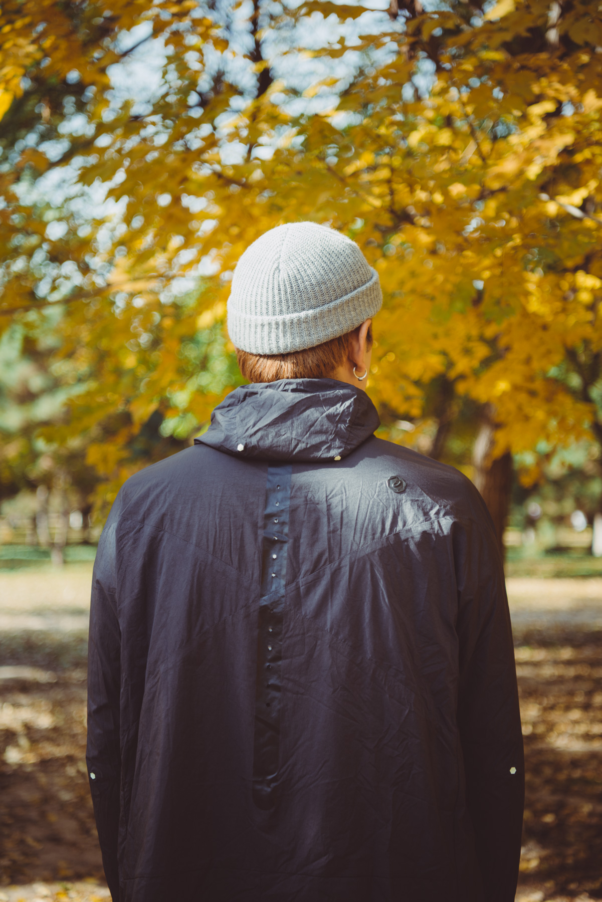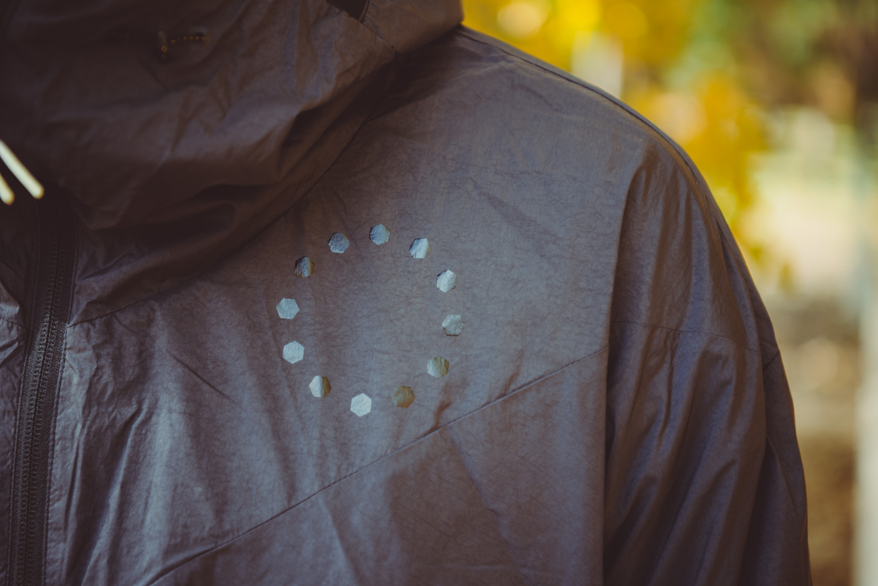 就拿这件JYUNI梭织FZ夹克来说,我们周末在北京奥林匹克森林公园进行了跑步的试穿,虽然清晨风比较大且较为寒冷,但在跑步途中的穿着感受却十分舒适,其次轻质的塔夫绸面料在防风方面也有极佳的表现,同时宽松的连帽外套设计兼具了功能与时尚,剪裁干净利落,另外在前后细节处的气孔设计也是机能性十足。