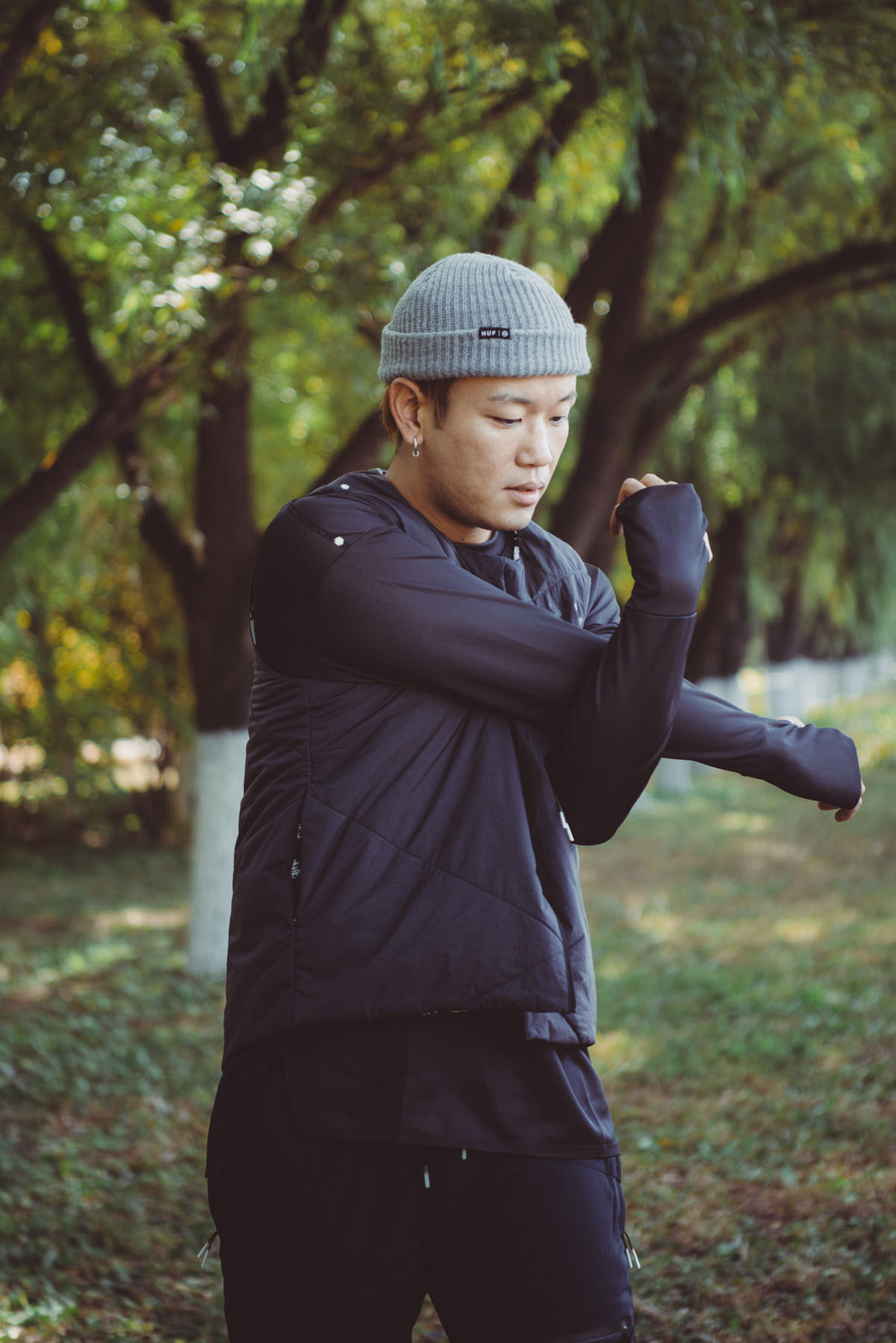 此外对于长距离跑步来说,佩戴普通帽款因为材质的局限性可能只吸汗不排汗还容易引发感冒,但JYUNI SHINKOKYU所使用的高科技面料既能保暖又兼顾了排汗的功能性,同时面部的保护也避免了跑步呼吸过程中冷空气的过度摄入,可谓十分贴心。如果只是短距离晨跑的话,那么还有轻薄款可以选择,袖底部分的隐形手套设计,对于北京的冬天来说绝对十分实用。
