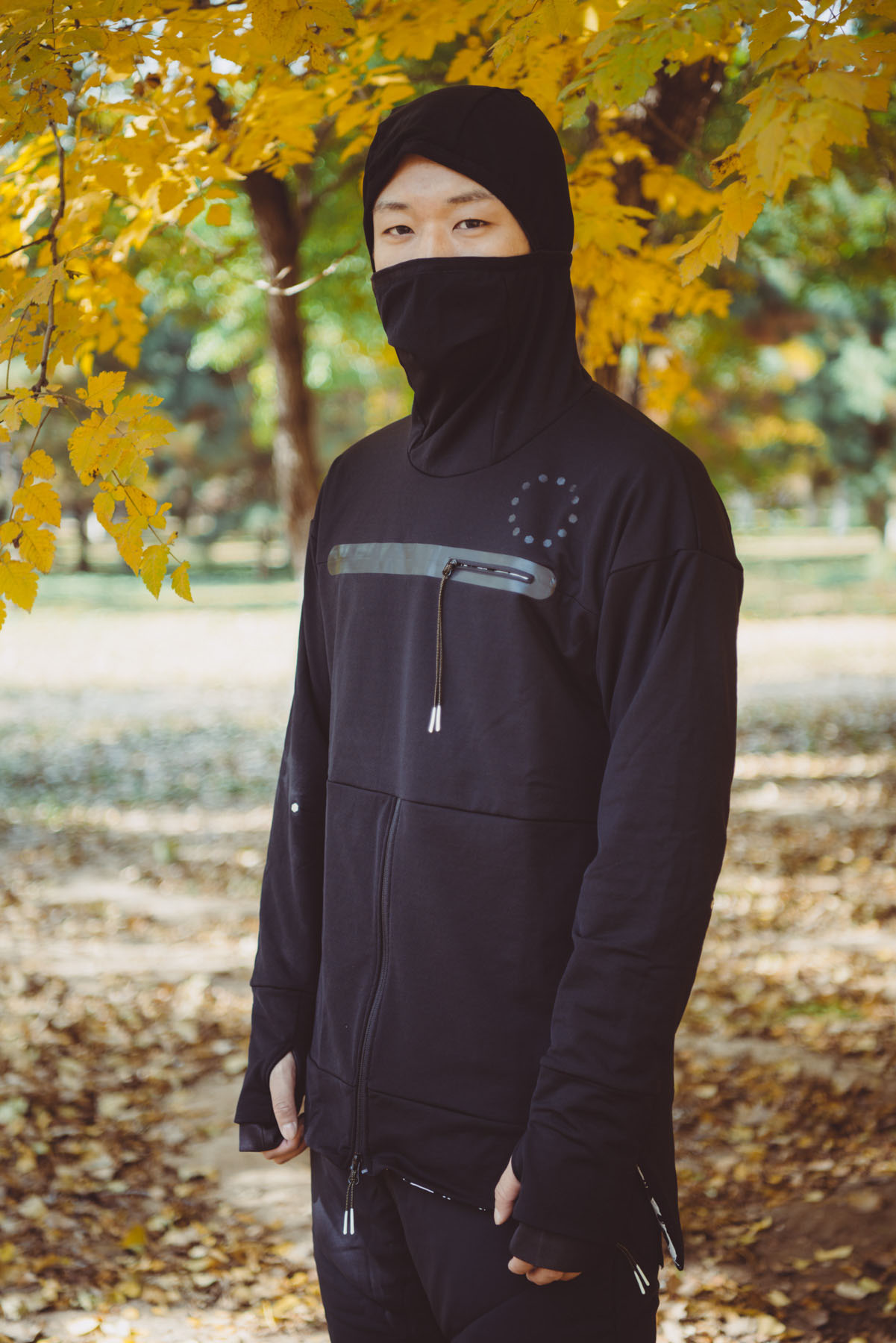 如果你还想要点特别抢眼的搭配,那么这套半拉链连帽套头衫独特的连帽设计,不但省去了秋冬时节跑步携带帽子保暖的环节,其次也让你的造型更为抢眼,颇有忍者的风范。