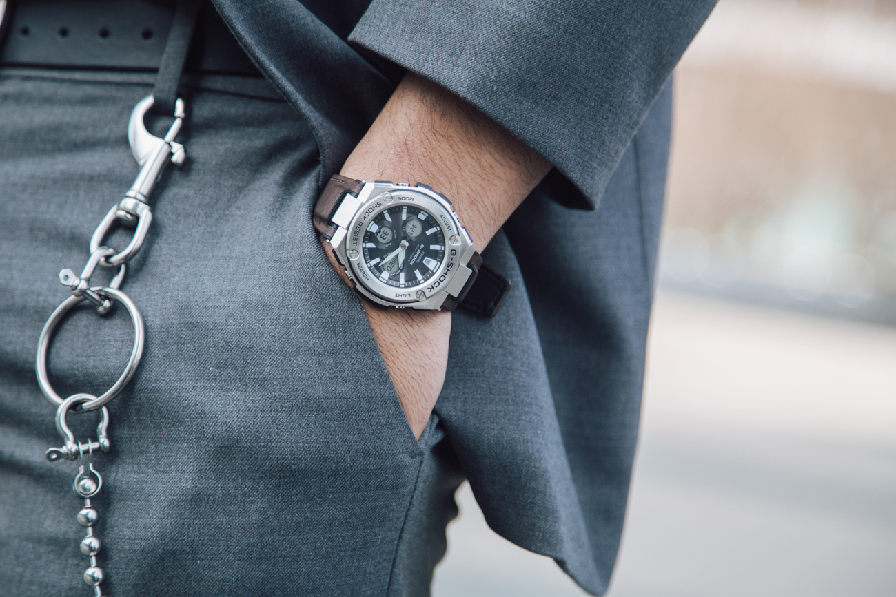 GST-W330L-1APR所营造出的超高搭配维度可不仅限于日常都市出行,在上班工作时间佩戴也能很好体现出它本身的气质。毕竟一块优质腕表如果只戴给自己看,未免失去了在同事和朋友之间传递你高级品位的分享乐趣。