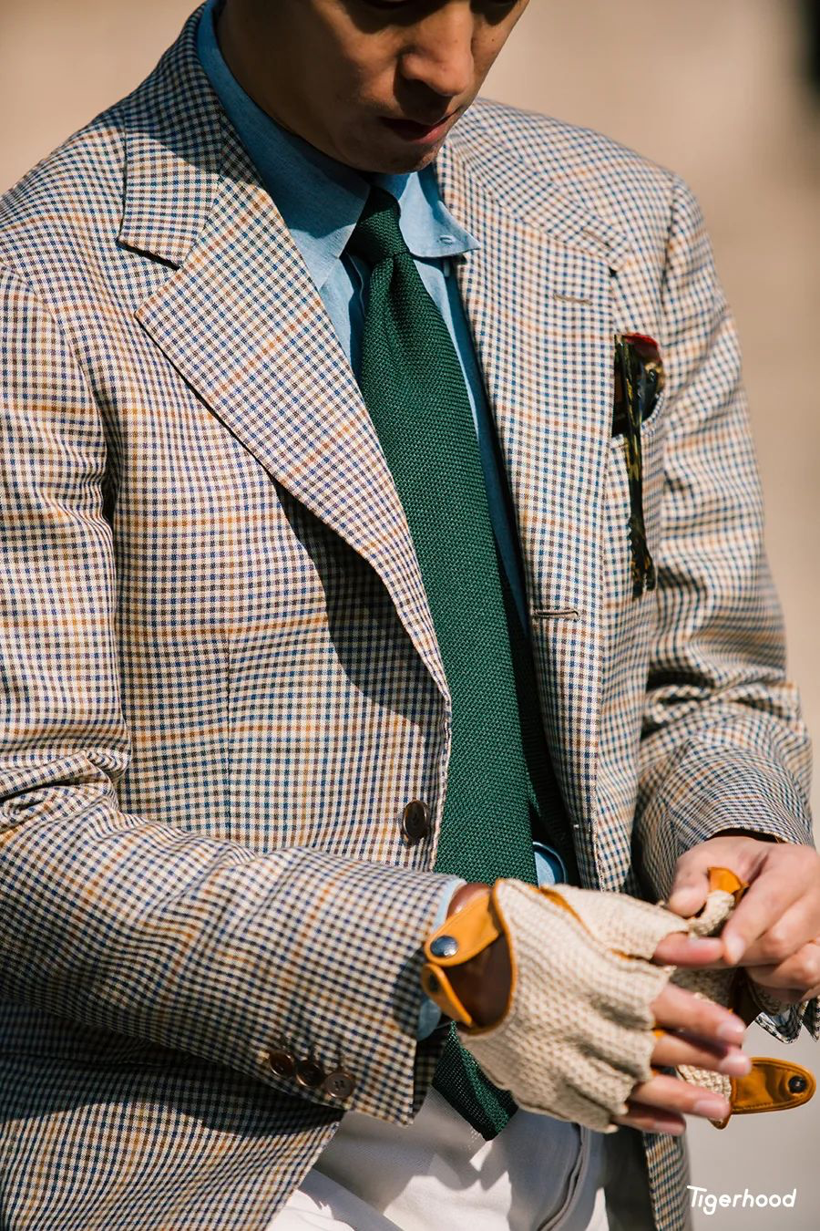 之所以选择休闲风格的编织领带,主要考虑到骑行时大多数都在户外,所以想要整体风格更为轻松一些,与骑行的状态能够融合。