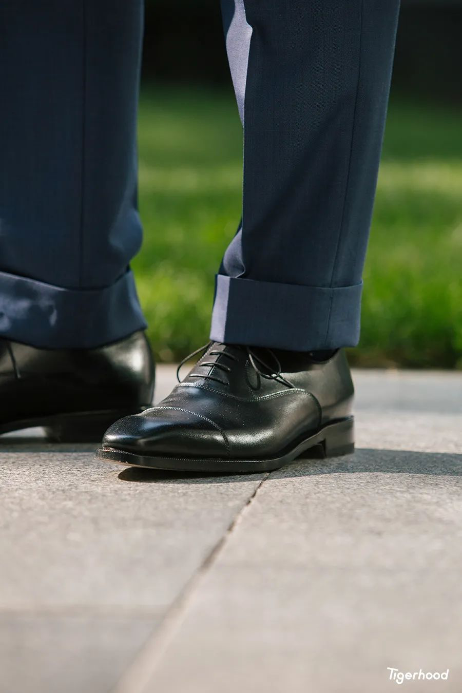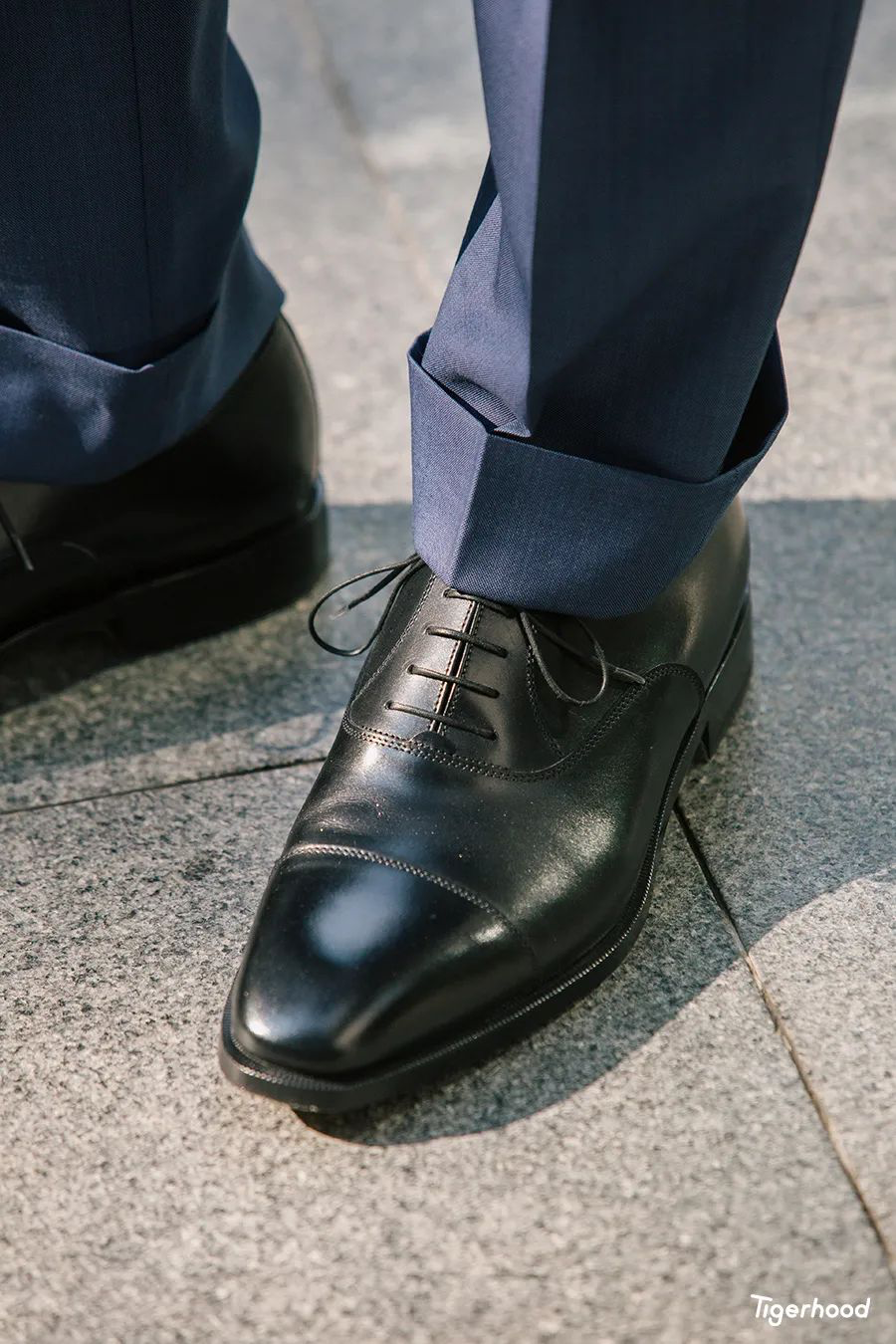 其次黑色的皮鞋能够很好的平衡整体的造型视觉,不会给人一种全身上下都用尽心思过于刻意花哨的感觉,工作和商务场合相对来说穿着黑色还是更为稳妥。