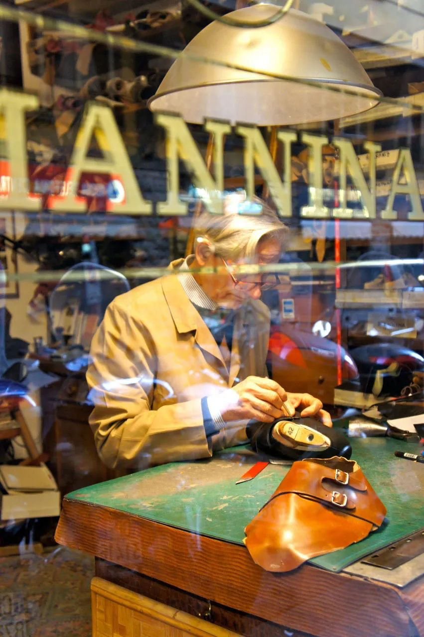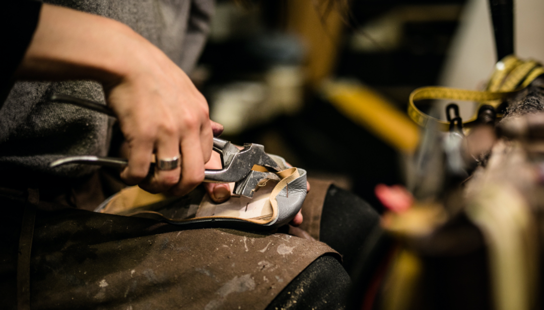 △ MANNINA 的匠人正在进行皮鞋的制作