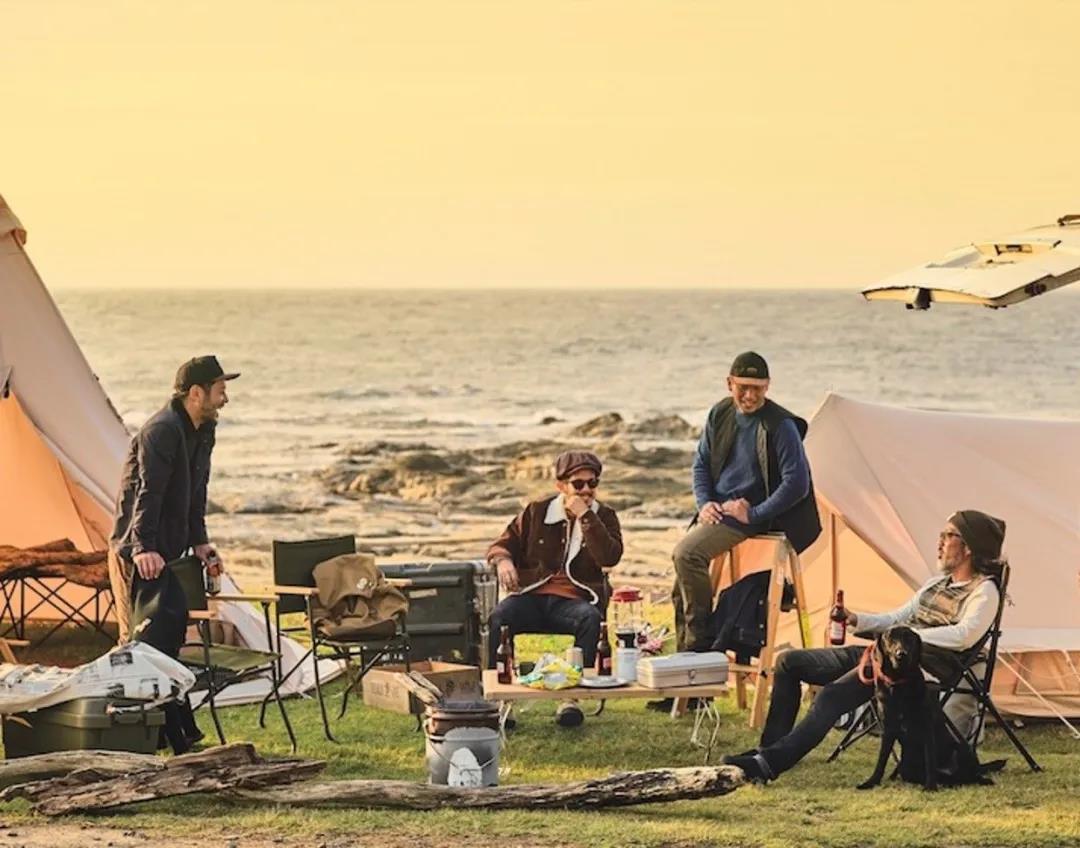 比起传统户外运动的露营体验,Glamping 会在装备是否好用之外,关注它们的设计是否足够美?Glamping 也会有更多“多余”和“不必要”之物,比如可以舒适而体面坐着的椅子,比如一瓶美酒,比如一只音质上乘的小音箱。