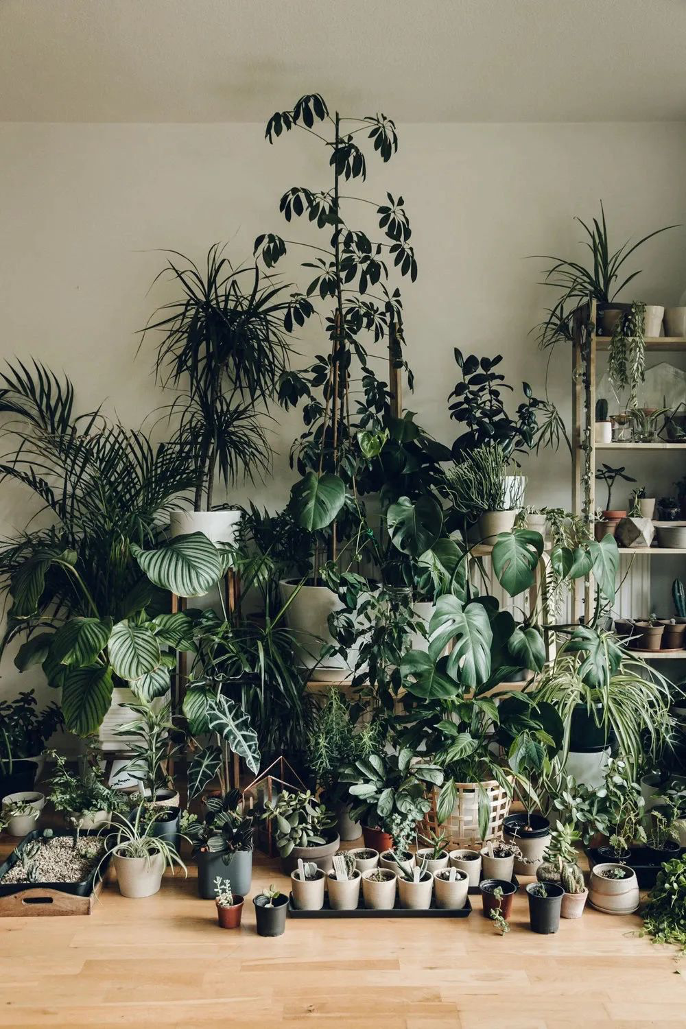 如果不纠结于风水上考量的话,绿植盆栽的摆放当然突出一个随心所欲,在客厅搭建一个层次感的“大满贯”也是未尝不可,而植物本身亦是能对室内空气起到一定的净化作用。