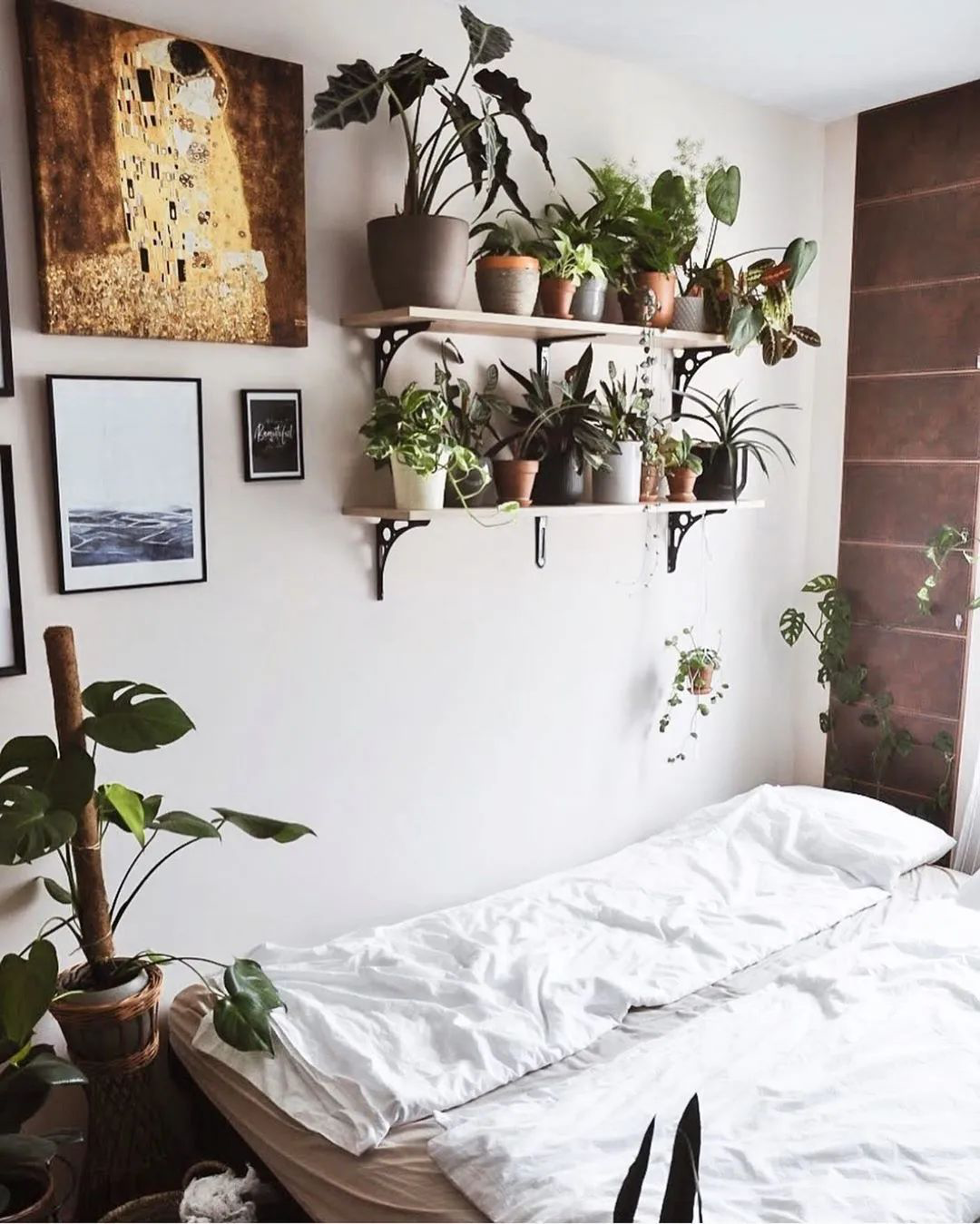 卧室一样要安排起来!空间有限的话就利用隔板创造空间来摆放绿植: