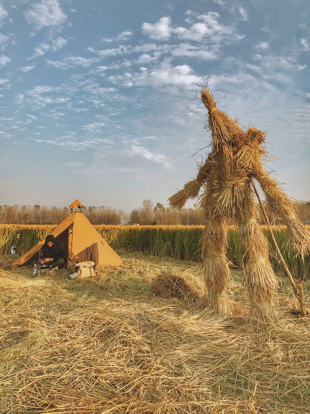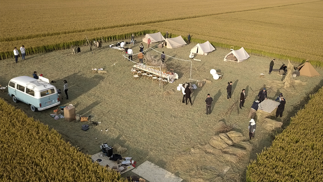 出席的朋友们来自五湖四海 , 都是有意思的家伙 。大伙儿在提前收割后留出的稻田空地中安营扎寨 , 搭起了一片田野上的乌托邦 。