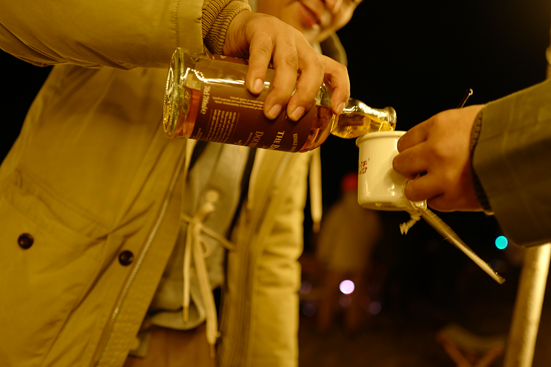 在90后被 DJ Tommy 带着节奏手舞足蹈的同时 , 80后都躲到帐篷里烤火取暖 , 开启了养生露营模式 。估计这在附近十里八乡都是从未有过的风景 。