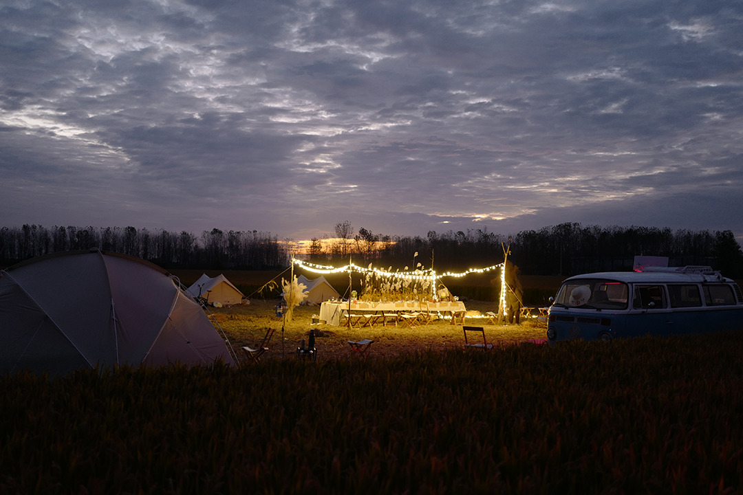 这次我们「岚丘生活」受到「国棉壹厂」的邀请 , 参与到「青年下飨」稻田露营活动中来 。