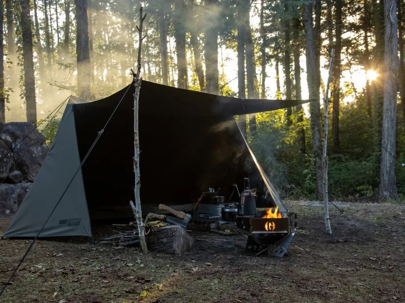 这一次,他们终于带来了自己研发的camping gear,GST-01帐篷和GST-02天幕两款产品。尤其是军绿色的阻火帆布材质,套用一名买家的评价来说,非常有荒野公园党的感觉。话不多说,通过一段视频来体验GRIP SWANY为我们营造的独有户外氛围吧。